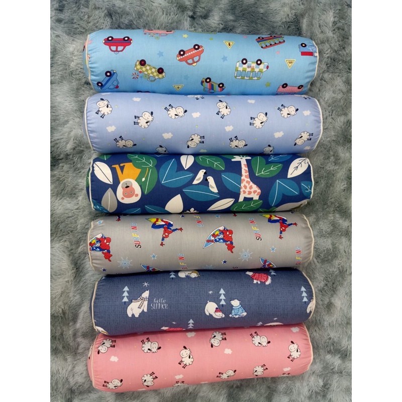 Gối ôm trẻ em 100% Cotton, vỏ gối ôm size 20cmx60cm ruột gối bông gòn trắng