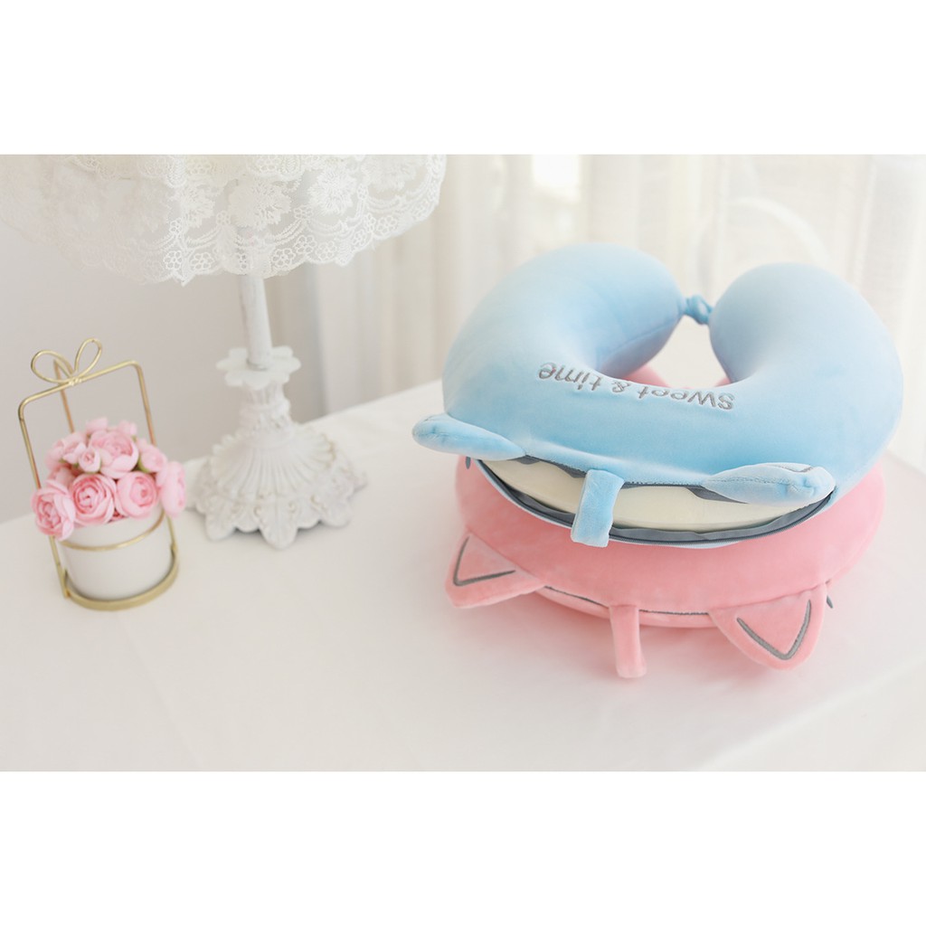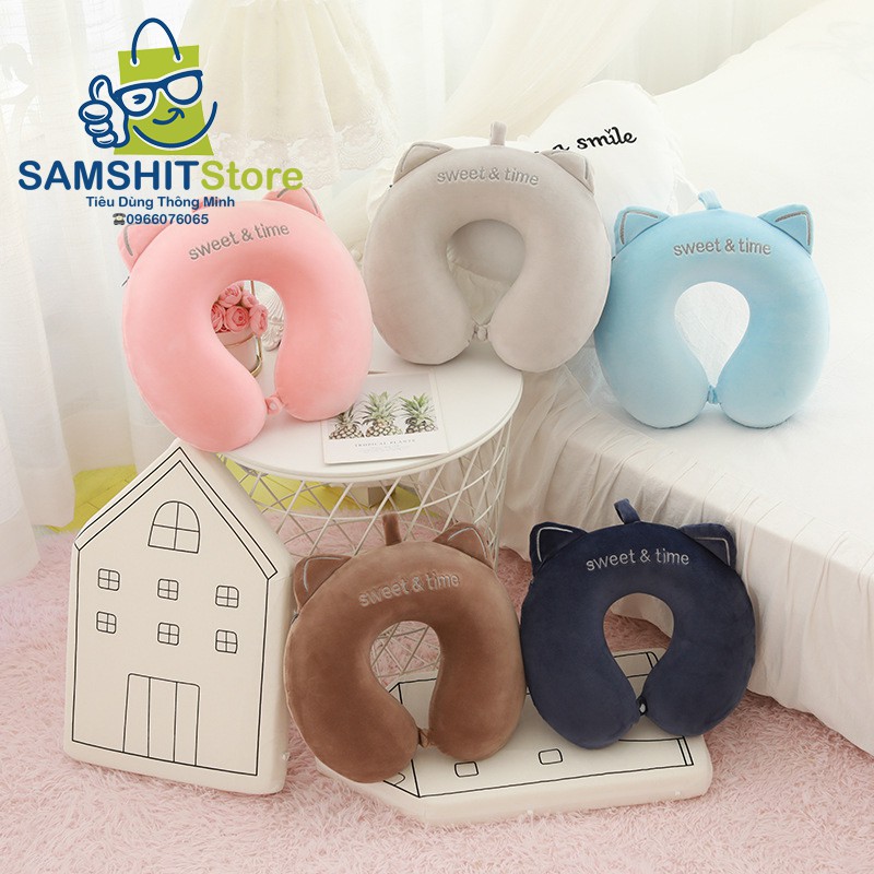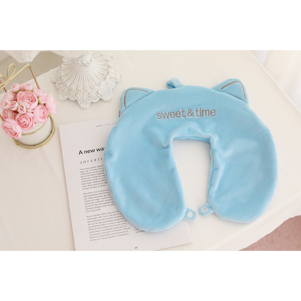 Giới thiệu Gối Tựa Cổ Chữ U Cao Su Non Tai Mèo Sweet & Time 4 Màu Basic Giảm Đau Mỏi Gáy cho Văn Phòng, Máy Bay, Học Sinh