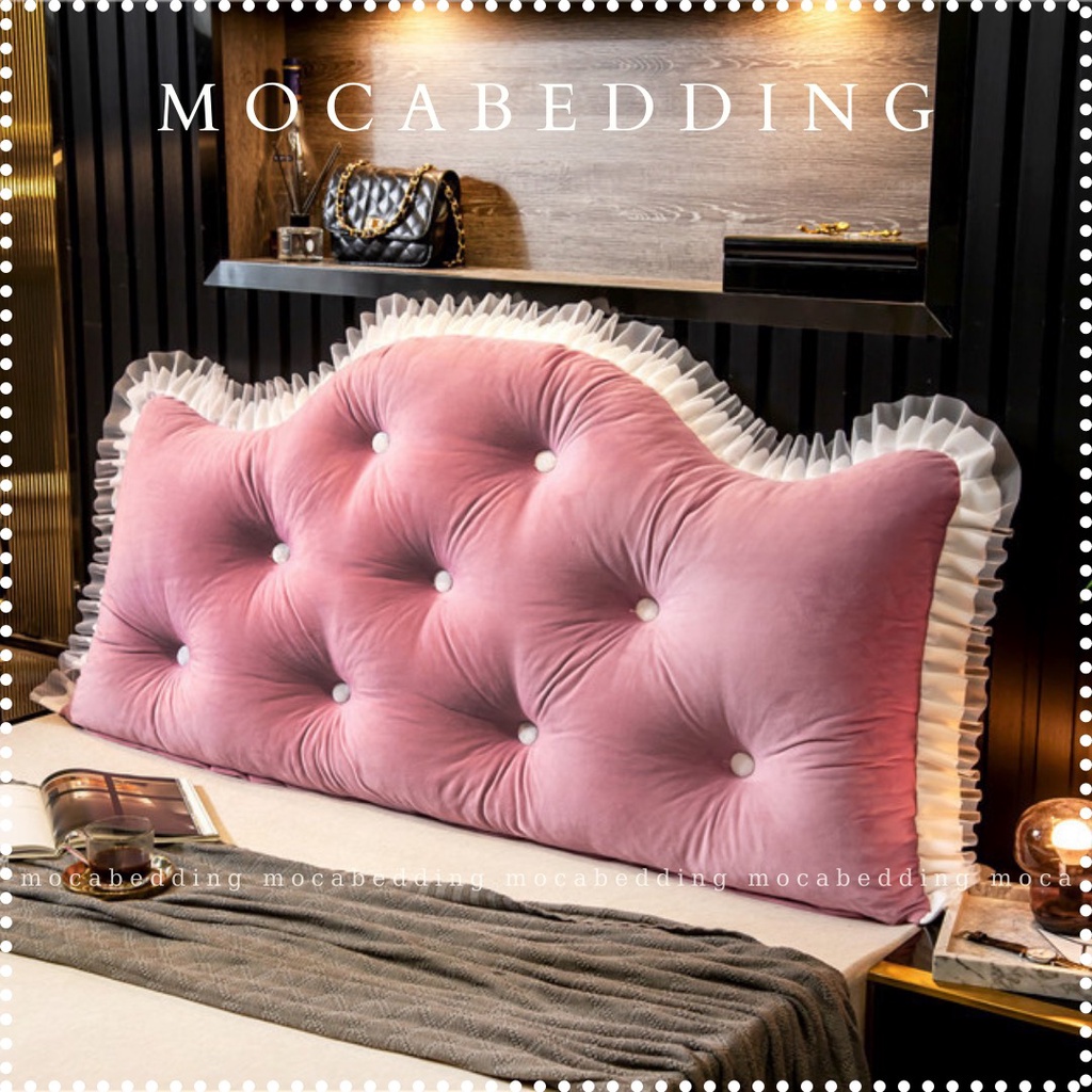 Giới thiệu Gối Tựa Đầu Giường Dáng Mây Đính Khuy Viền Ren Sang Chảnh 1m5 / 1m8 - Moca Bedding