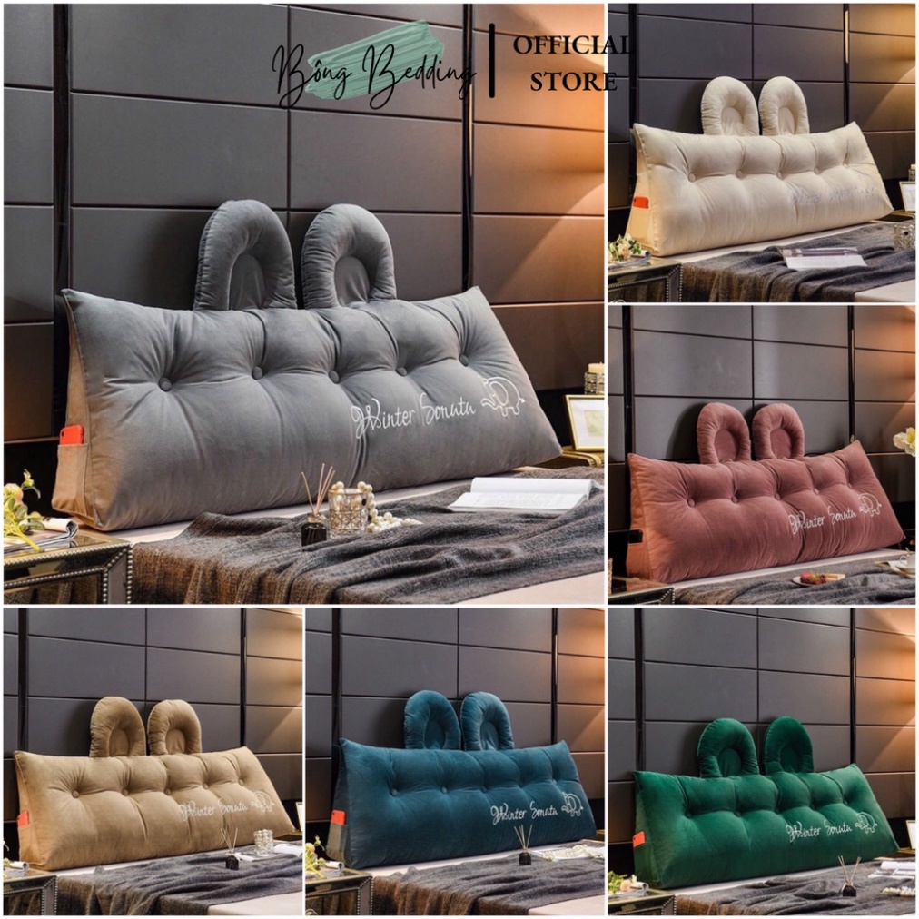 Giới thiệu Gối Tựa Đầu Giường Mẫu Tai Gấu Đính Khuy Cao Cấp Hàng Có Sẵn Kích Thước 1m5 và 1m8 cao 55cm ( không tính tai)