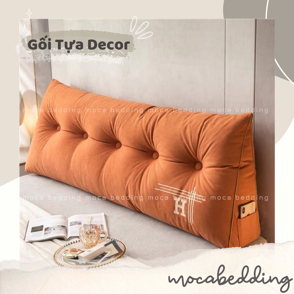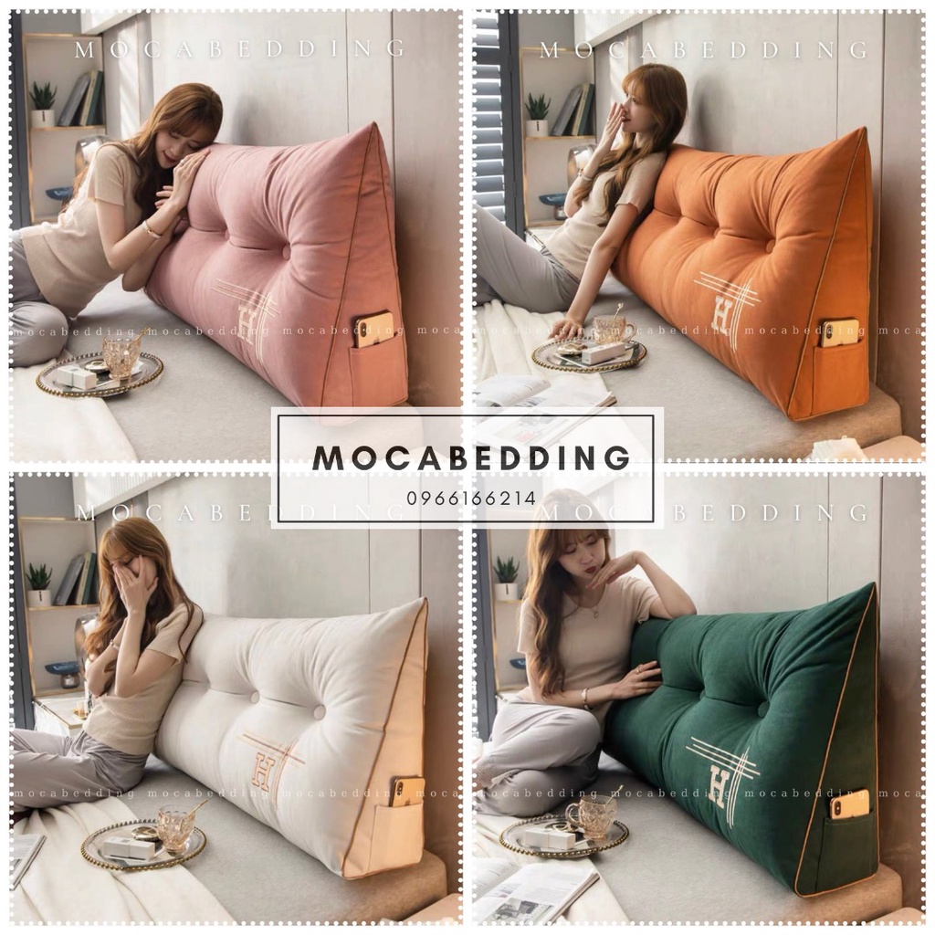 Gối Tựa Đầu Giường Mẫu Tam Giác - Gối Tựa Lưng 1m5 / 1m8 Tai Gấu Thêu Chữ Cao Cấp - 19 Màu Cực Sang - Moca Bedding