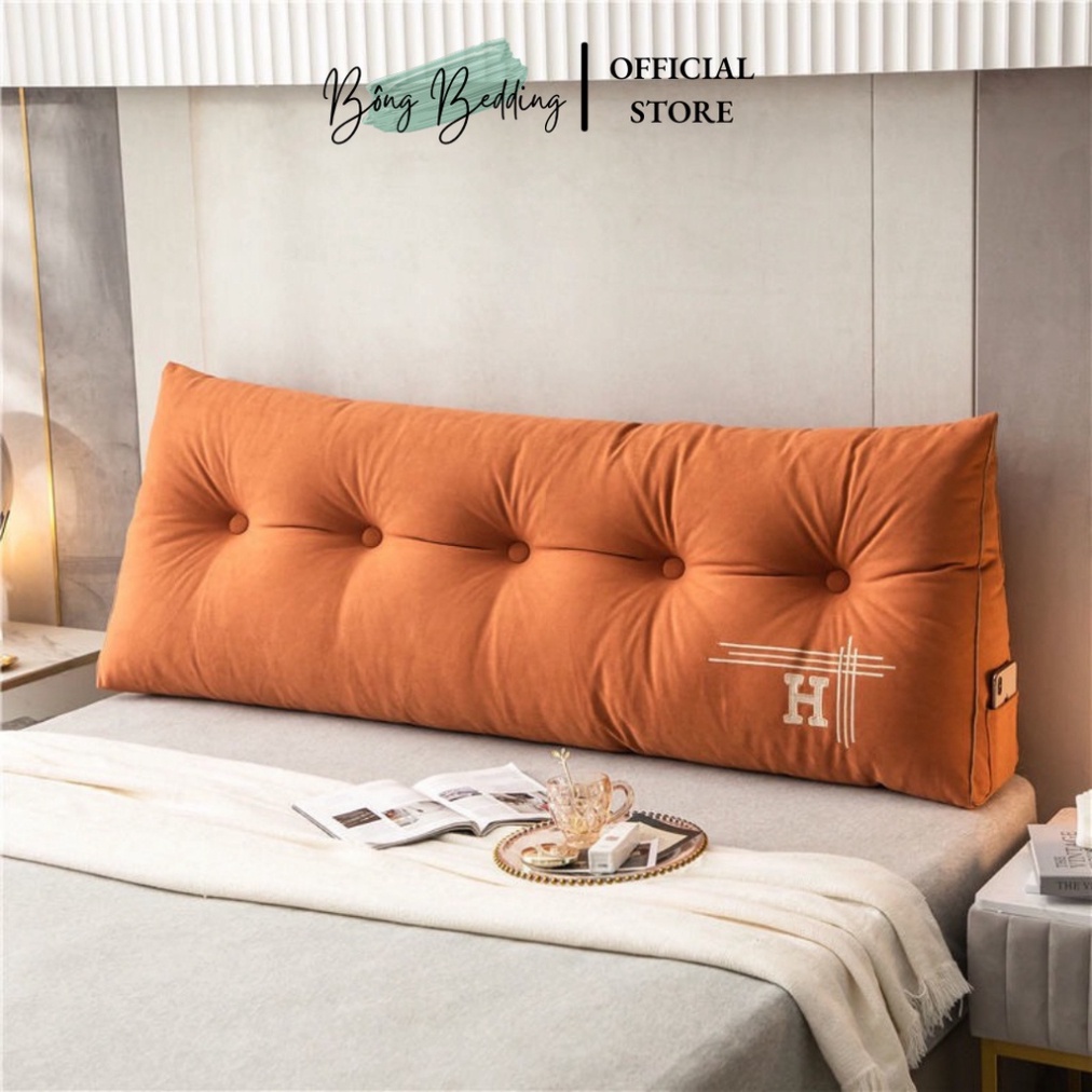 Giới thiệu Gối Tựa Đầu Giường Tam Giác Thêu Chữ H Đính Khuy Bọc Cao Cấp Có Sẵn Kích Thước 1m8