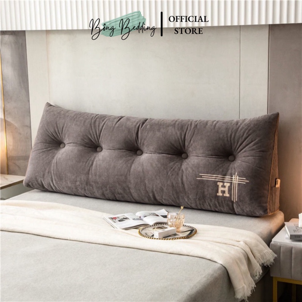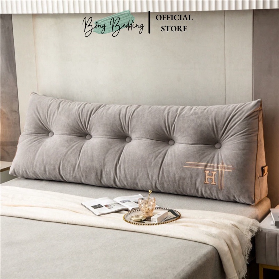 Gối Tựa Đầu Giường Tam Giác Thêu Chữ H Đính Khuy Bọc Cao Cấp Có Sẵn Kích Thước 1m8