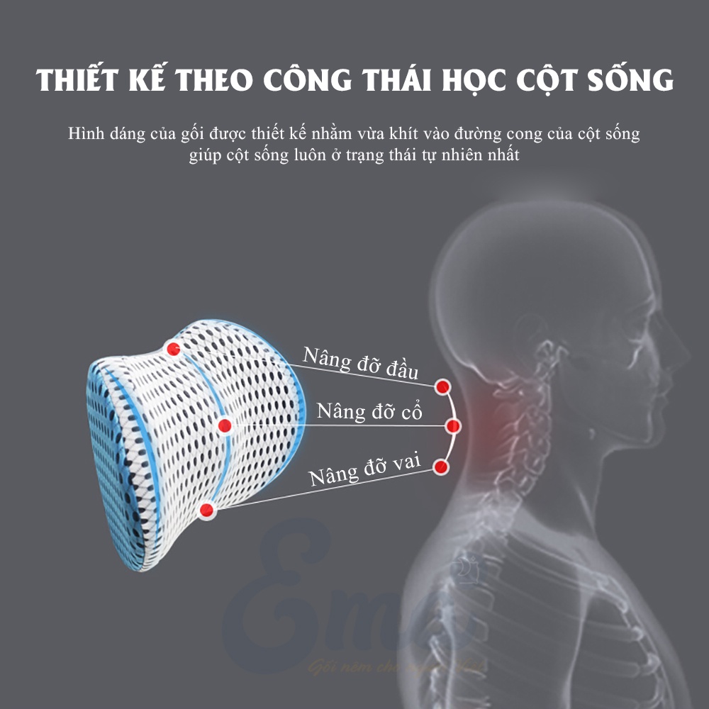 Bộ gối tựa đầu và kê thắt lưng văn phòng EMA - Ruột cao su non - Vỏ 4D siêu thoáng