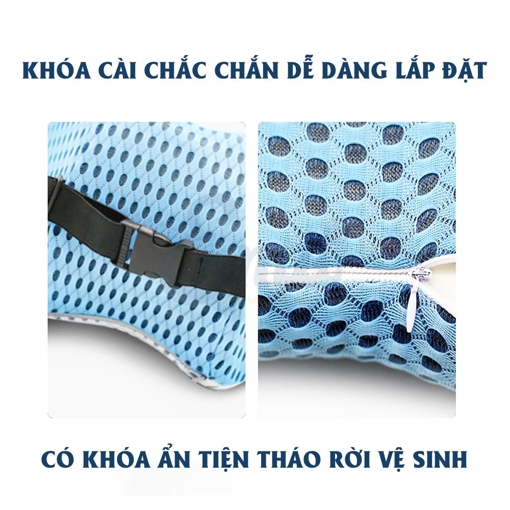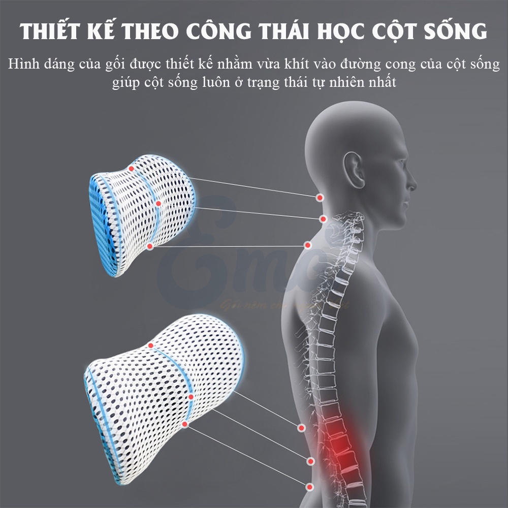 - Tựa lưng thiết kế tối gian chỉ nâng đỡ phần thắt lưng ( khu vực thường xuyên đau khi ngồi lâu ) - không gây hầm, nóng lưng như các loại gối tựa full lưng khác