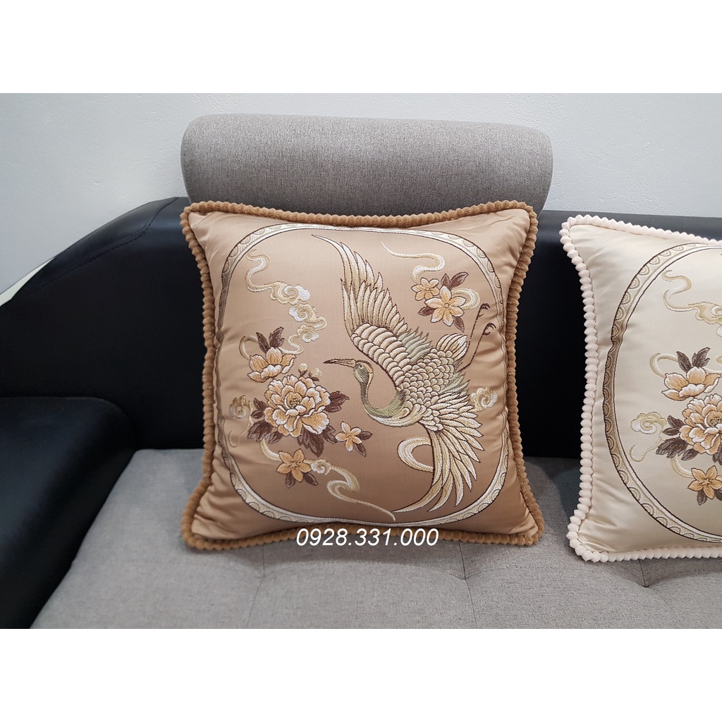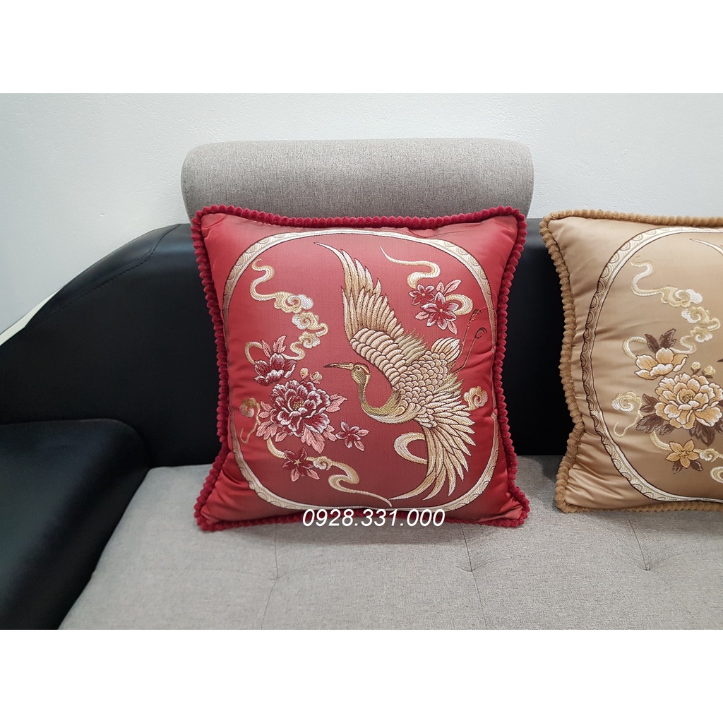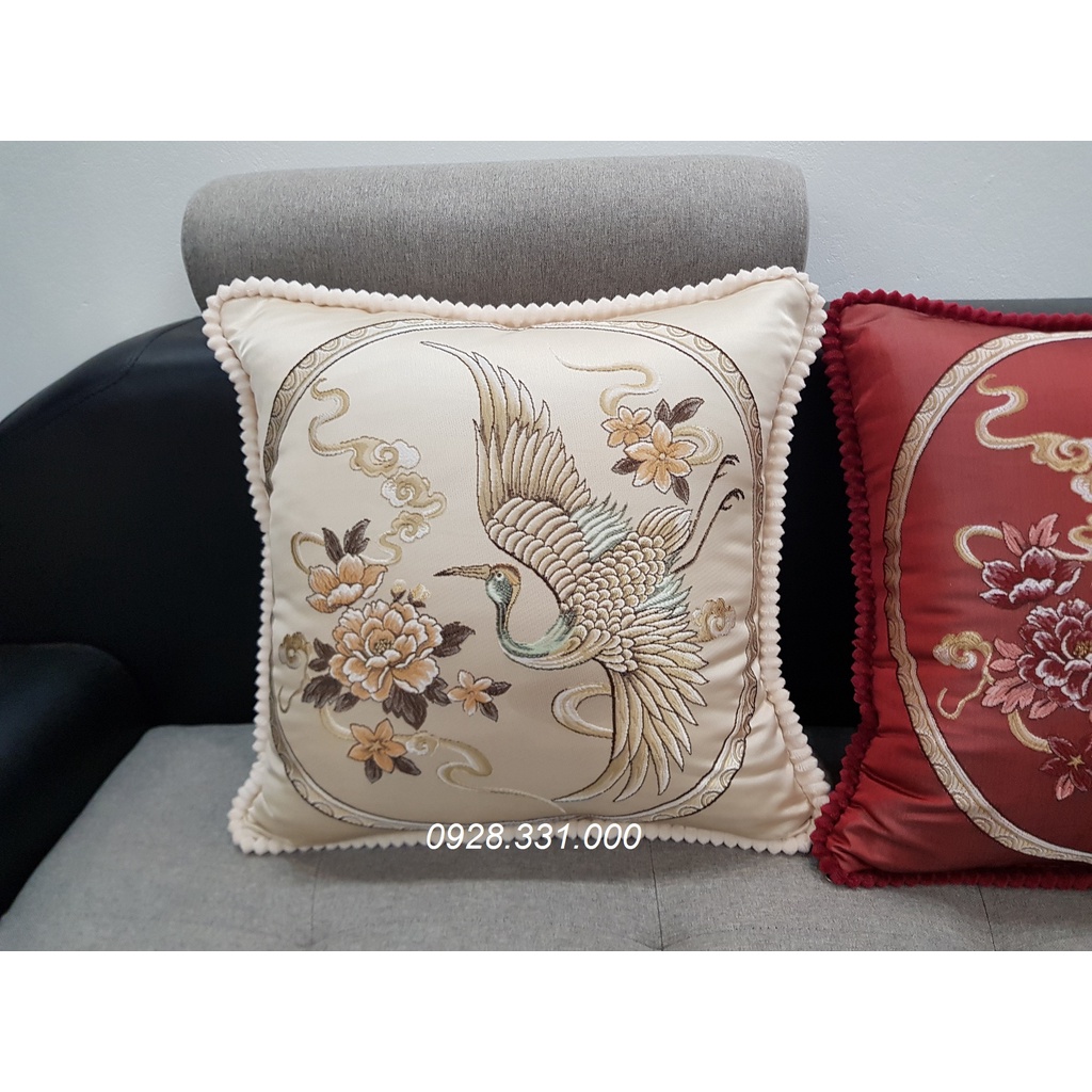 Gối tựa lưng 48x48cm Gấm thêu đẹp