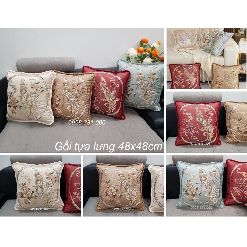Giới thiệu Gối tựa lưng 48x48cm Gấm thêu đẹp