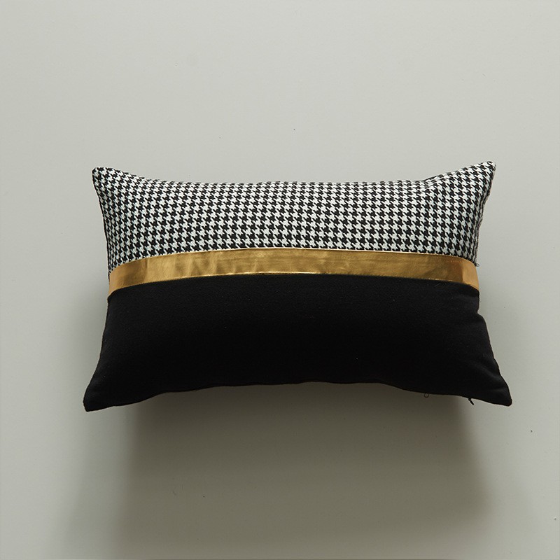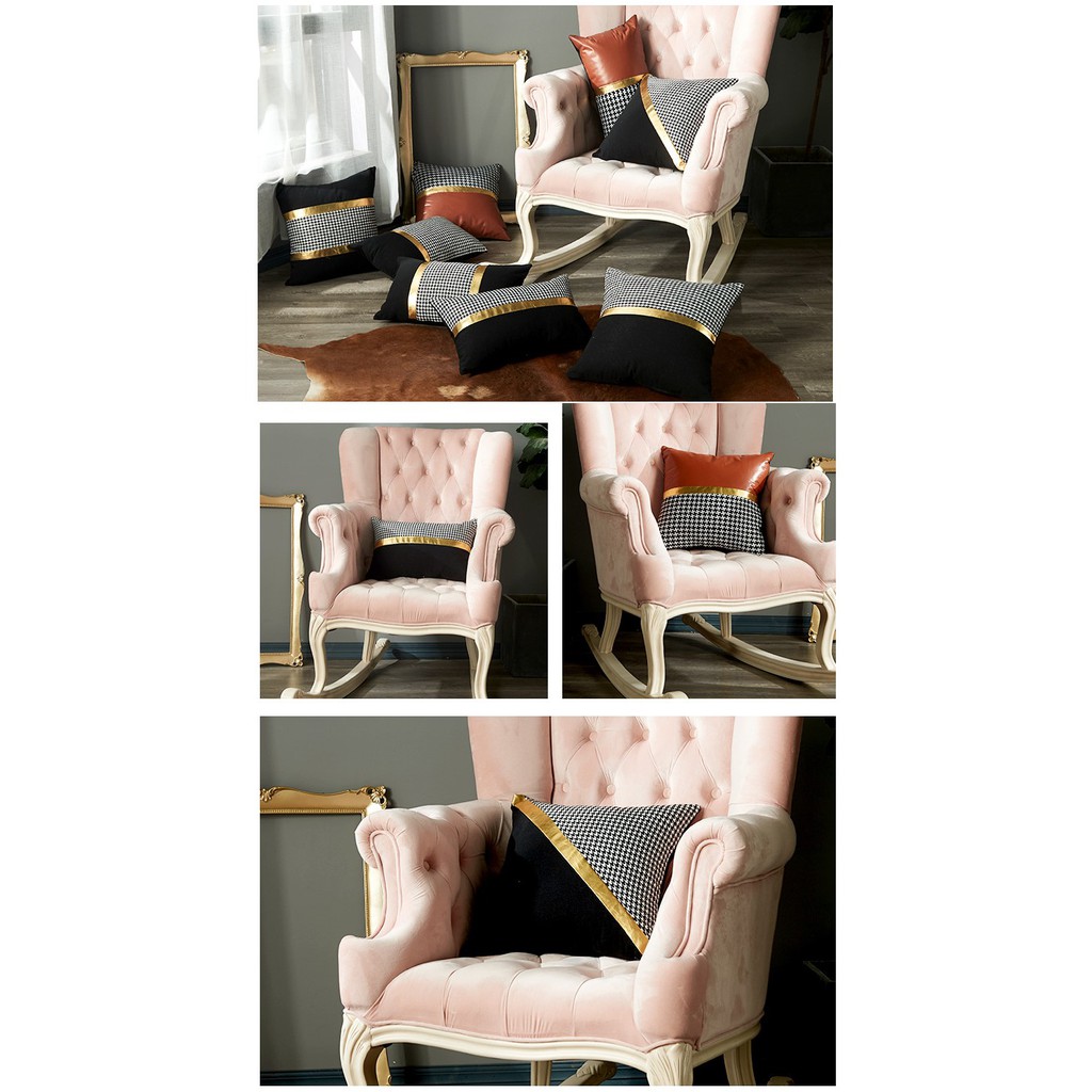 Gối Tựa Lưng Áo Gối Trắng Đen Phối Viền Vàng Phong Cách Đơn Giản