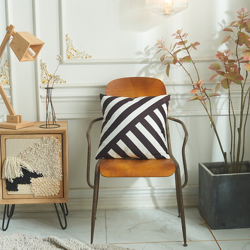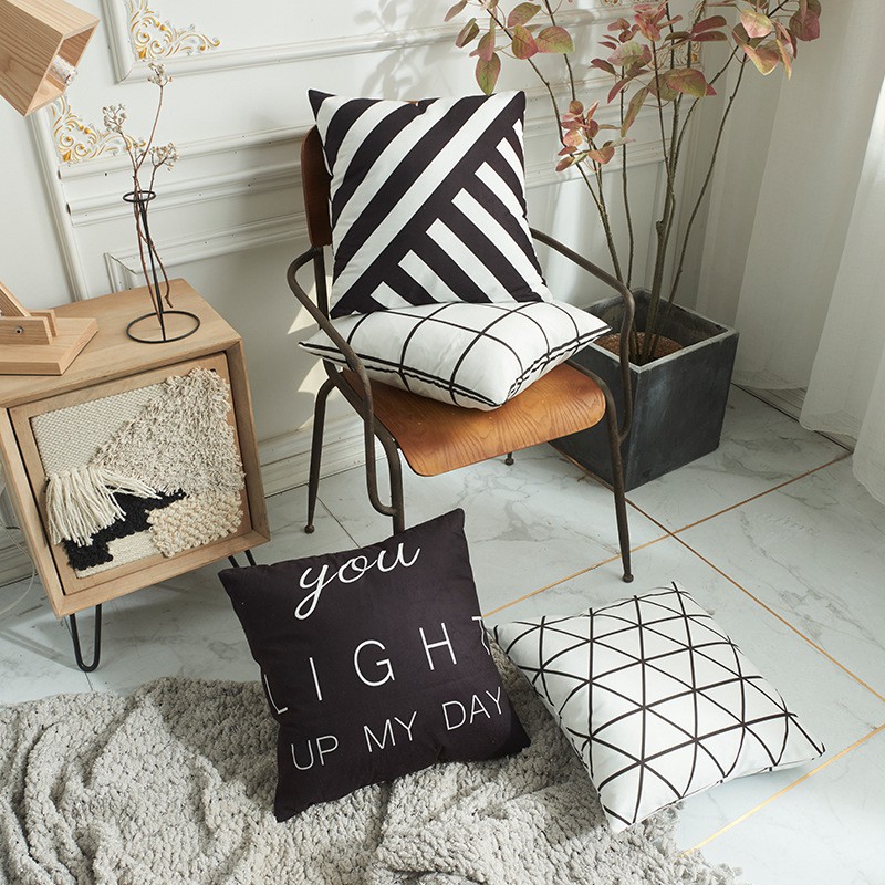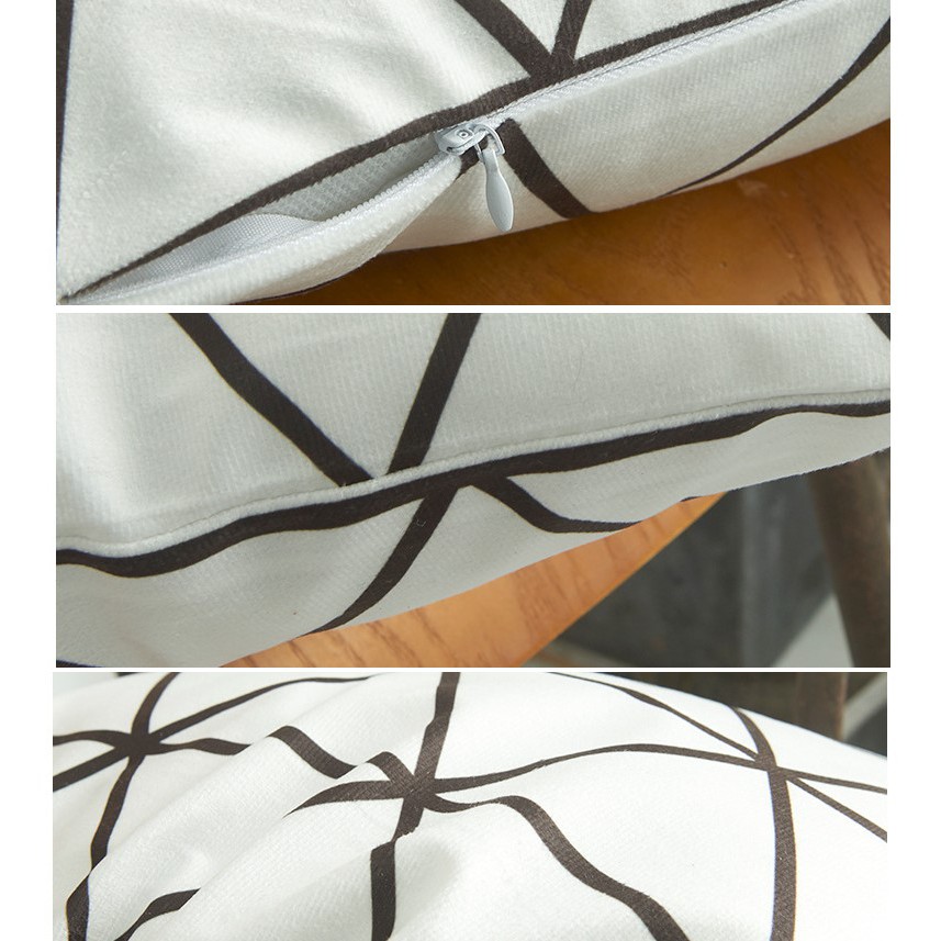 Gối Tựa Lưng Bắc Âu Nhung Nỉ In Màu 2 Mặt Đen Trắng Sang Trọng