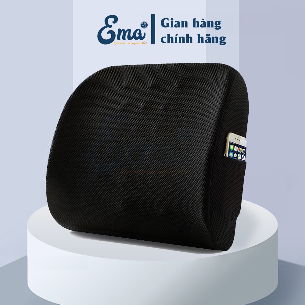 - Điểm đặt biệt chỉ có ở gối tựa lưng có gai Massage Ema là ruột gối có cấu tạo gai Massage với 18 gai chia 3 hàng chạy dọc cột sống, giúp tạo cảm giác như khi sử dụng các ghế Massage chuyên dụng.
