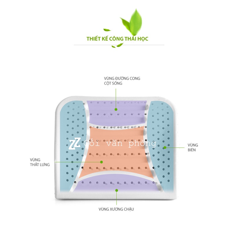 💢Phần nâng đỡ của gối tập trung vào phần thắt lưng ngang hông. Đây chính là phần của cột sống phải chịu áp lực lớn nhất khi ngồi làm việc và là trung tâm của vùng đau lưng.