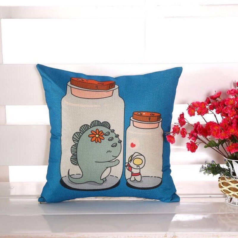 - Gối tựa sofa có vỏ in 1 mặt, mặt sau màu trơn