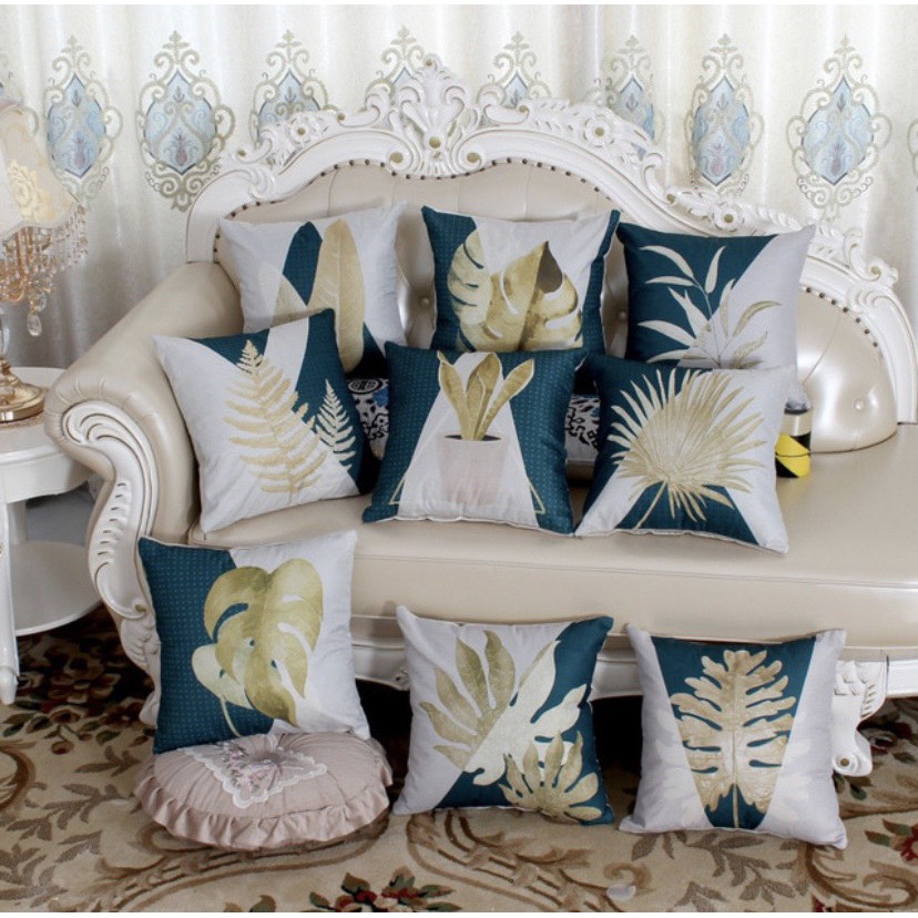 GỐI Tựa Lưng, Gối Trang Trí Sofa CHIẾC LÁ TRẮNG XANH VẢI BỐ CAO CẤP ĐX082