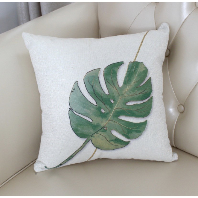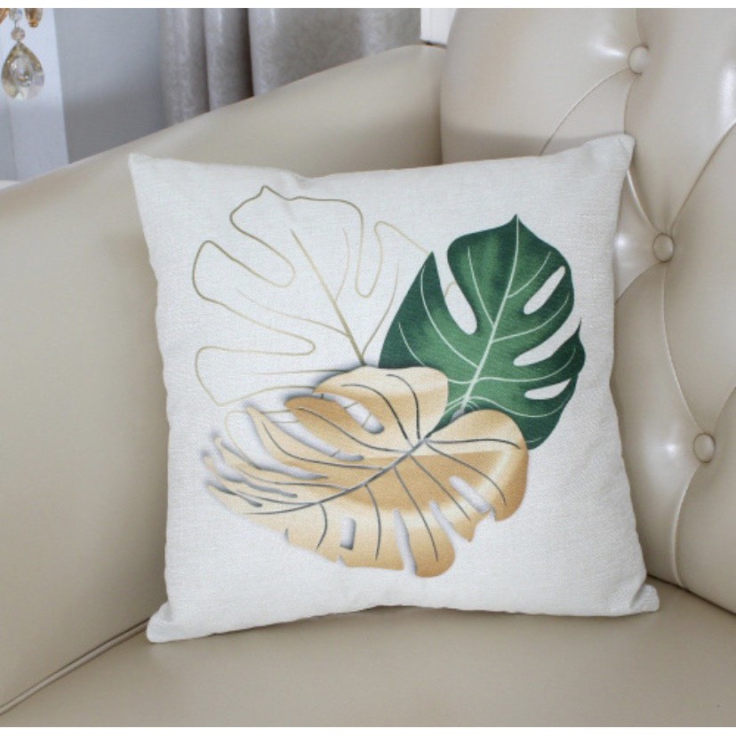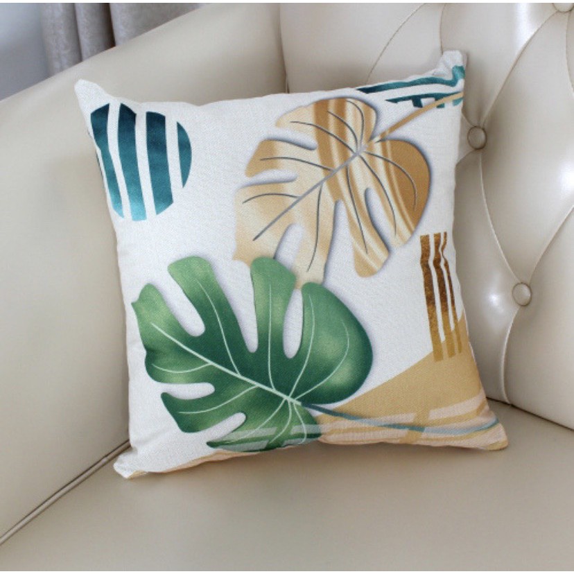 Gối tựa lưng, Gối Trang Trí VẢI BỐ HỌA TIẾT CHIẾC LÁ XANH VÀNG SBK077