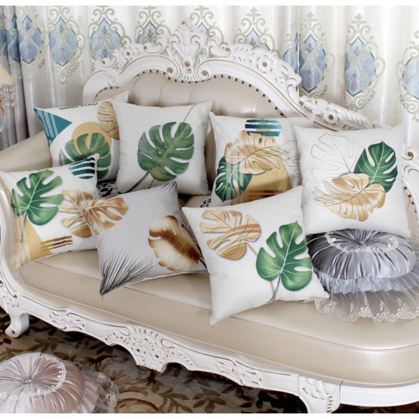 Nhà cửa & Đời sống > Nội thất > Đệm ngồi || Gối tựa lưng, Gối Trang Trí VẢI BỐ HỌA TIẾT CHIẾC LÁ XANH VÀNG SBK077Còn hàng