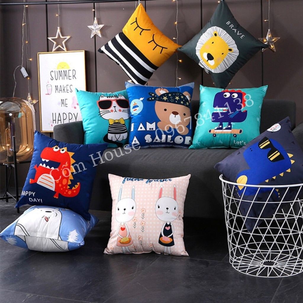 Gối Tựa Lưng, Gối Tựa Sofa, Gối Tựa Vuông Nhung 2 Mặt Hoạt Hình Bắc Âu Siêu Bền Kèm Ruột 45x45