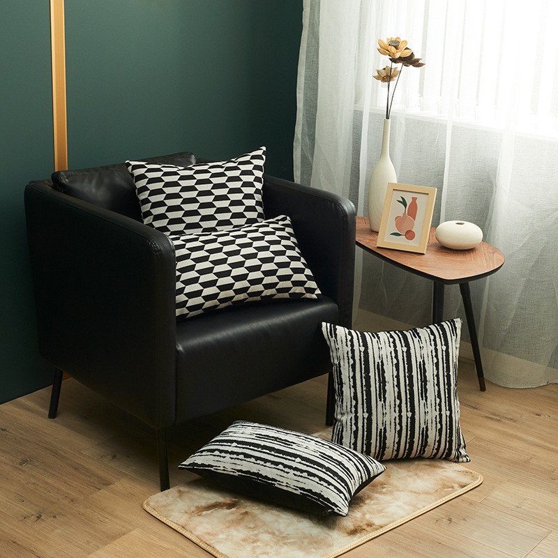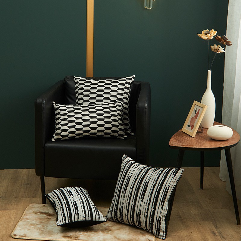 Giới thiệu Gối Tựa Lưng Jacquard Nhuộm Sợi Theo Phong Cách Ý Vệt Đen Trắng