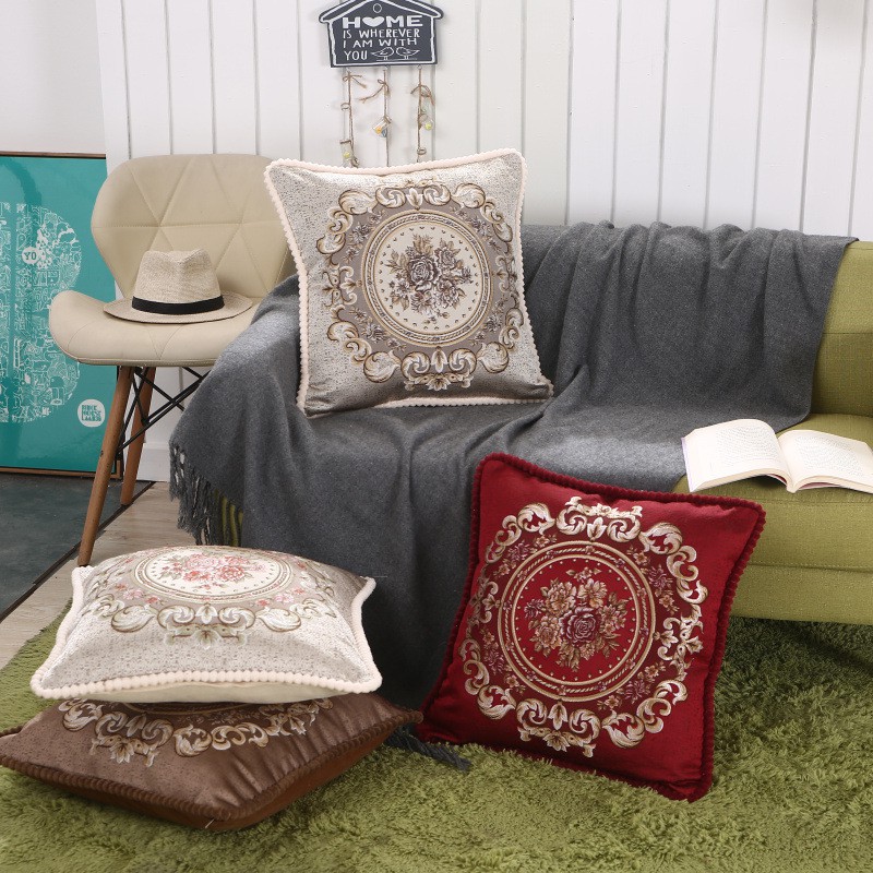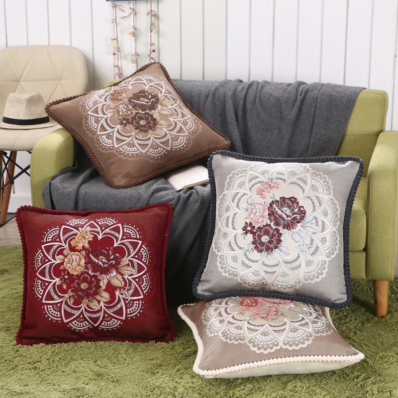 Giới thiệu Gối Tựa Lưng Nhung Đệm Lưng Dày Tây Âu Thêu Vòng Hoa