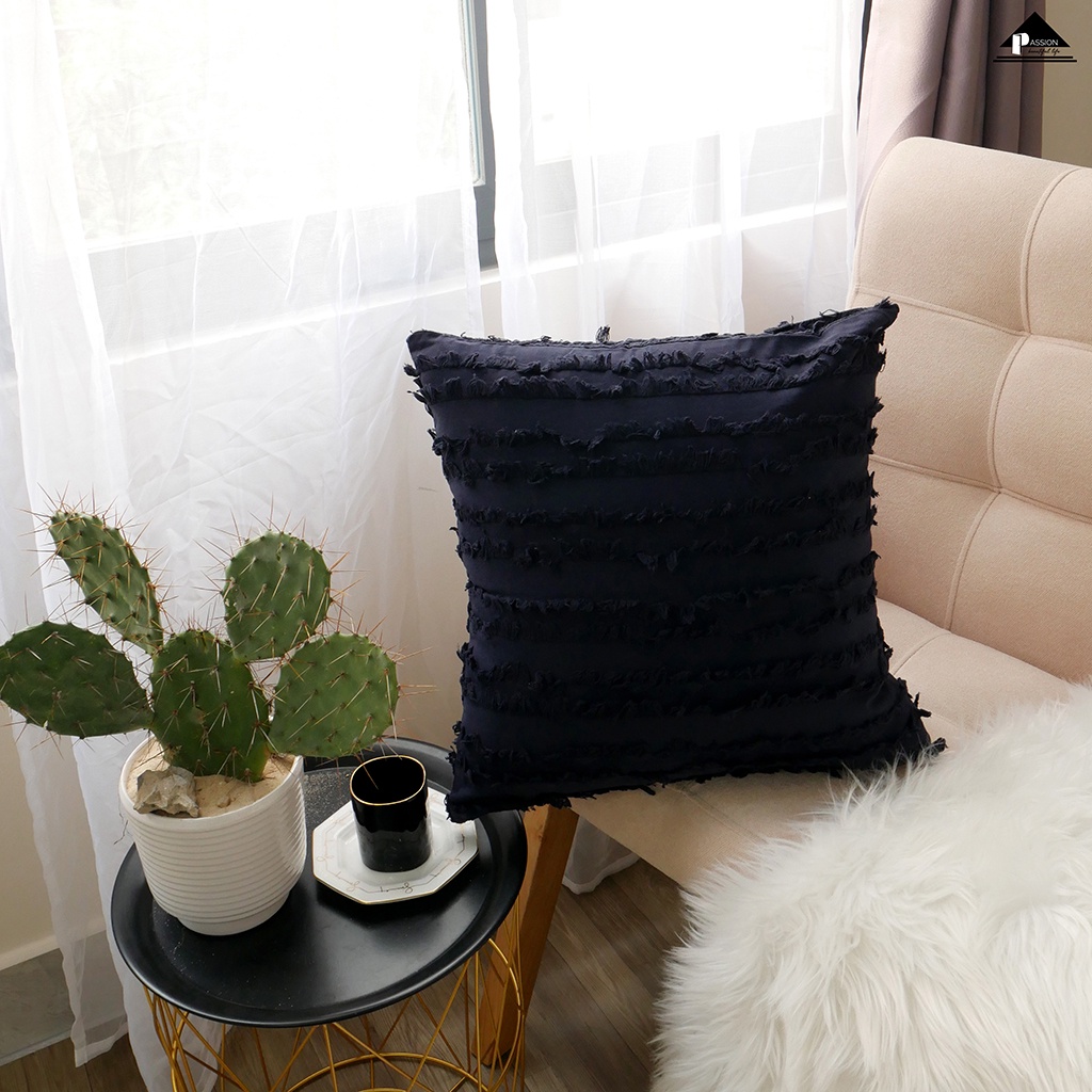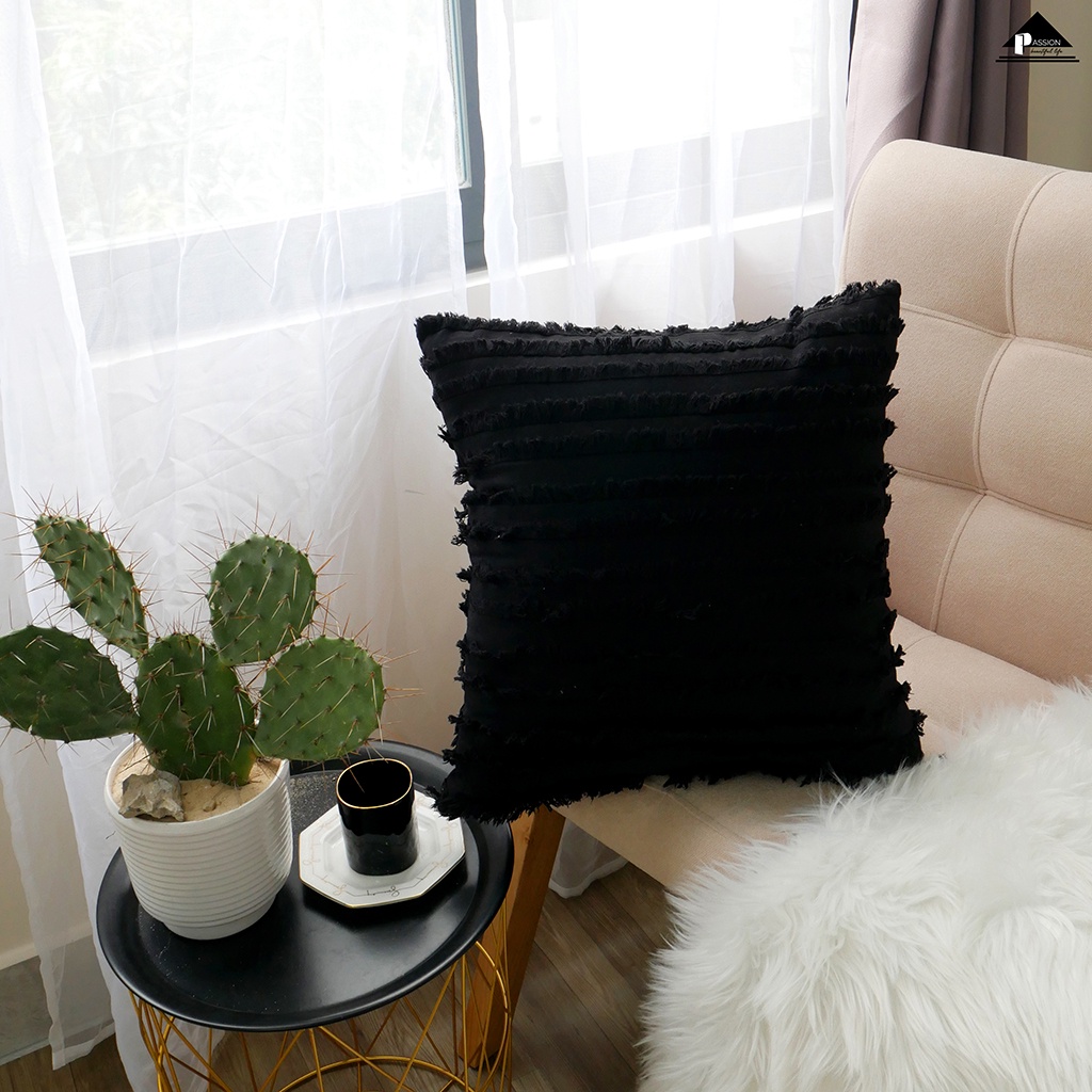 Vỏ Gối Tựa Lưng Sọc Tua Rua Vải Lanh Màu với kích thước 45x45cm dễ dàng sử dụng trang trí với vật dụng, ghế ngồi, ghế văn phòng đều rất vừa vặn.