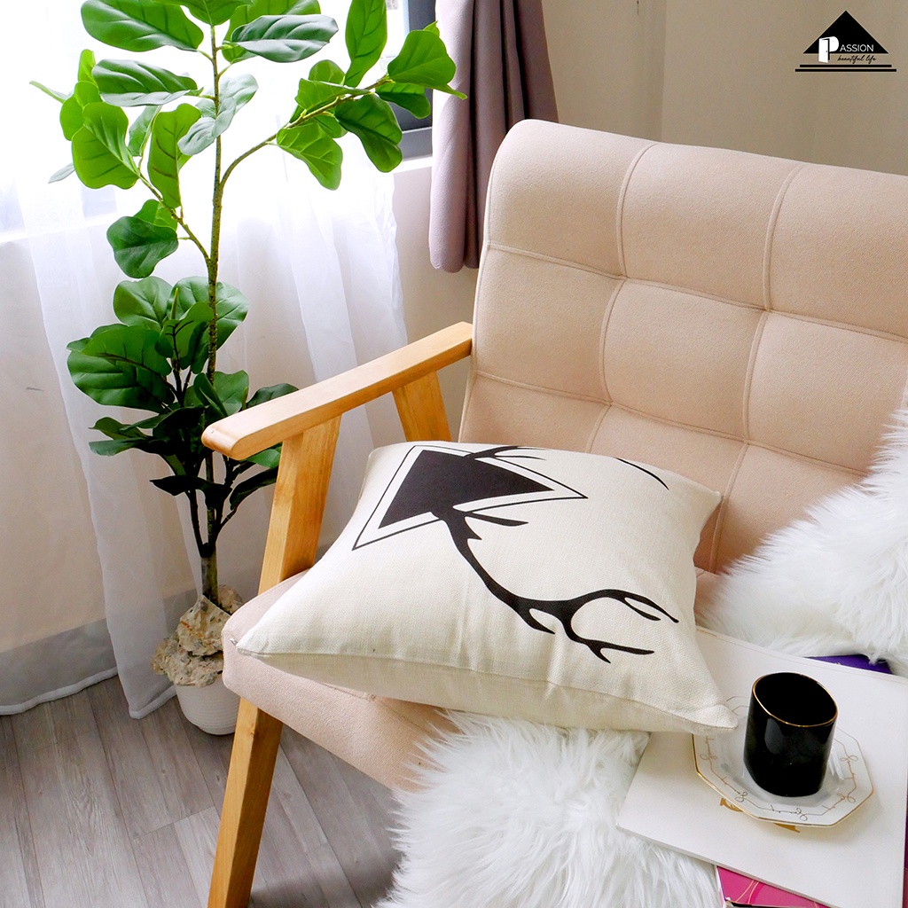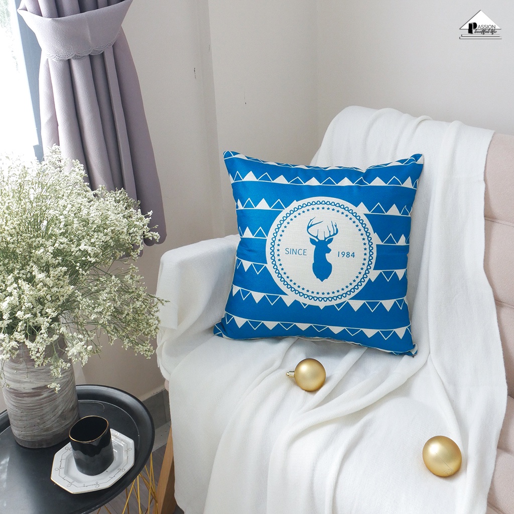 Gối Tựa Lưng Sofa Bố Gai Nền Trắng Hình Nai