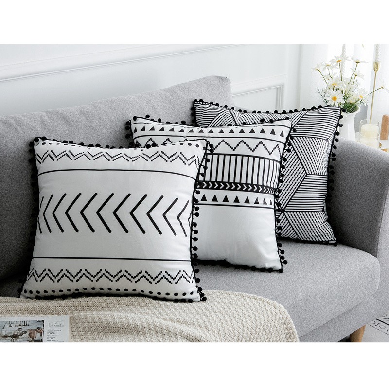 Nhà cửa & Đời sống > Nội thất > Đệm ngồi || Gối Tựa Lưng Sofa Nhung Hình Học Đen Đính Tua Rua 9871Còn hàng