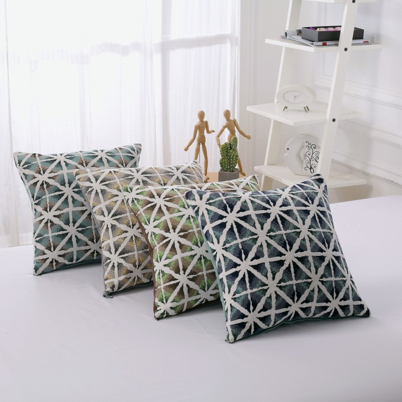 Gối tựa lưng Sofa trang trí Gấm thêu Hình Học không ra màu, bền đẹp theo thời gian.