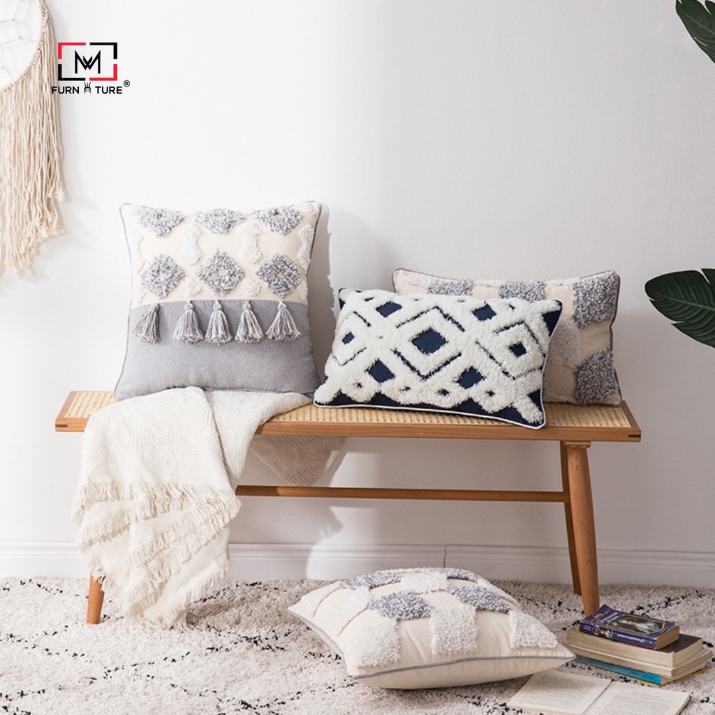 Nhà cửa & Đời sống > Trang trí nhà cửa > Vỏ bọc nội thất || Gối tựa lưng thêu nổi tua rua ren ma rốc thương hiệu MW FURNITURECòn hàng