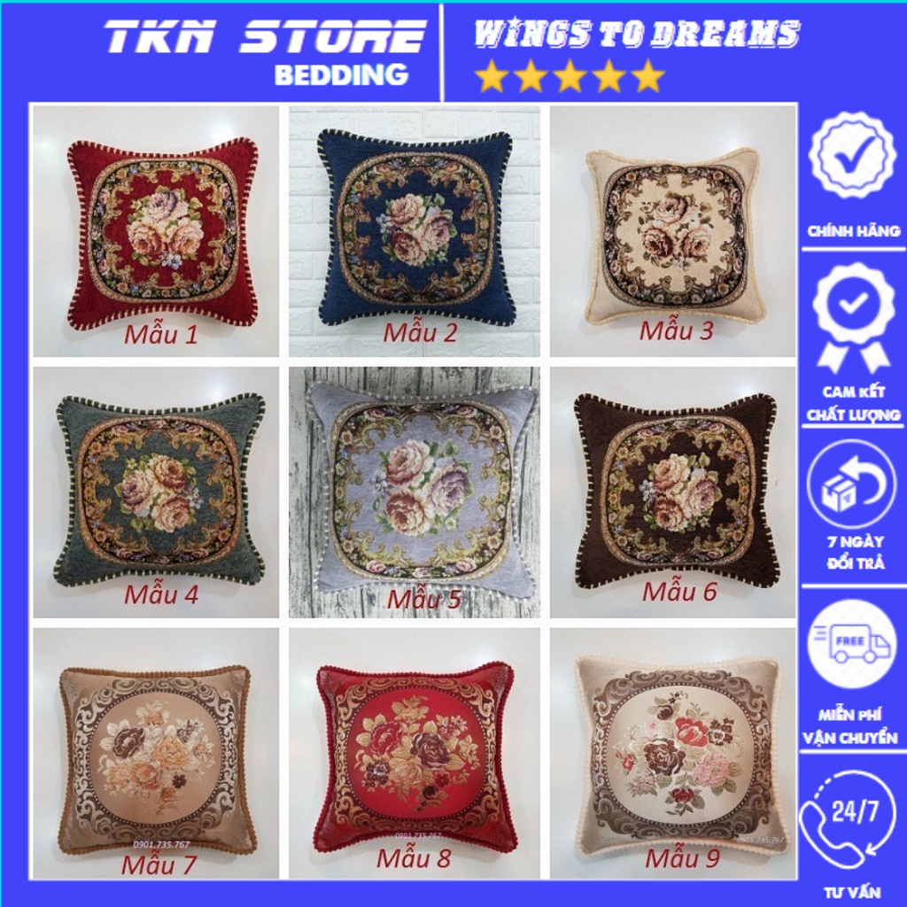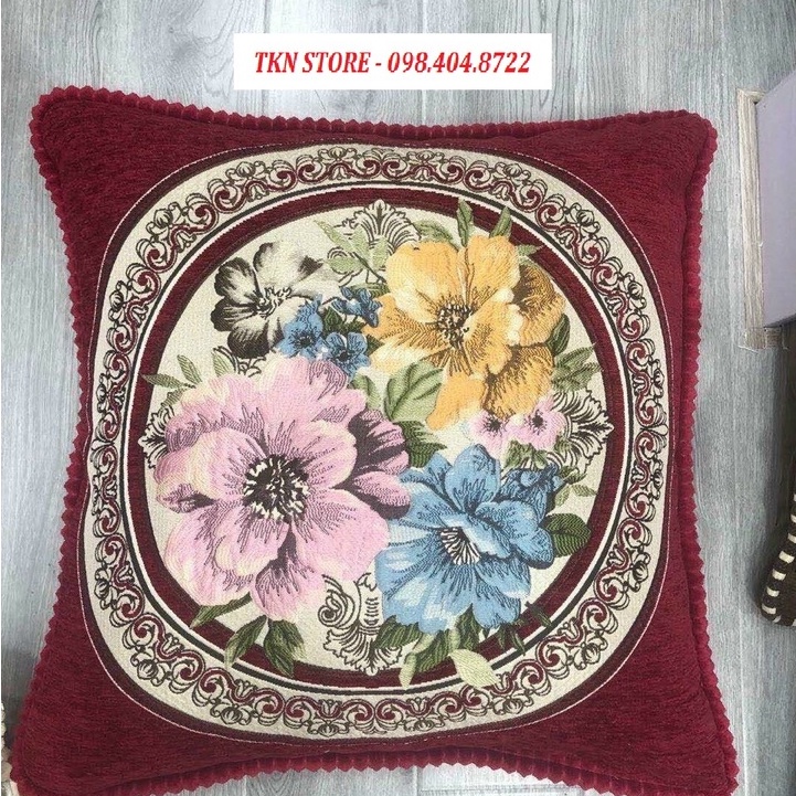 Vỏ Gối tựa Tây Âu - lụa hoa sang trọng