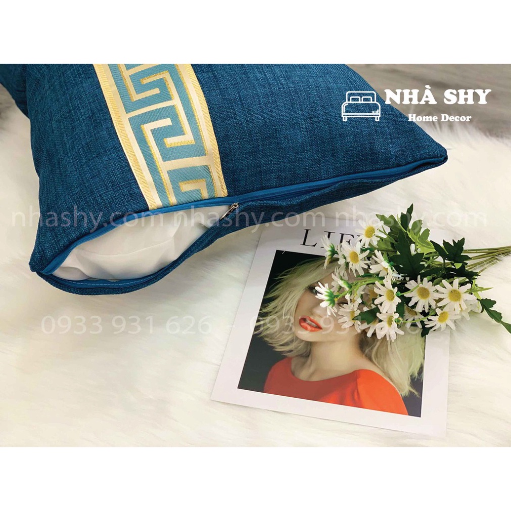 - Vỏ : vải gai phong cách hiện đại, họa tiết sọc thêu nổi cổ điển trên một mặt. Vỏ có khoá kéo tàng hình giọt lệ. Thích hợp :