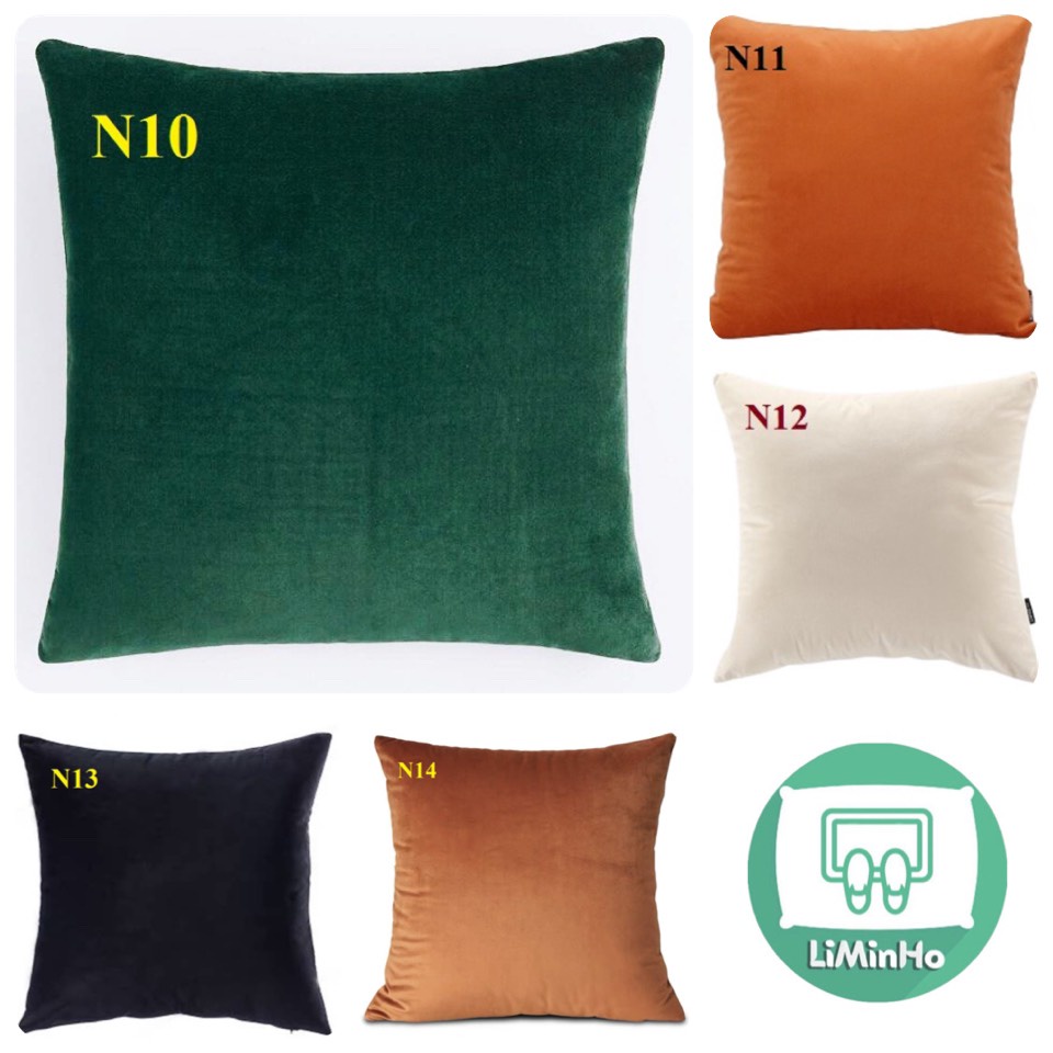 - Kiểu dáng: Gối nhung vuông và gối chữ nhật mix màu sắc chất liệu nhung lụa