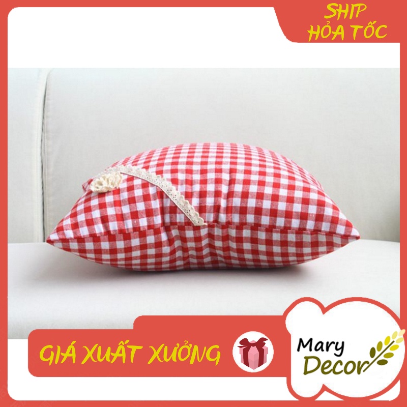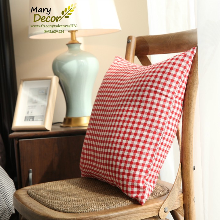 Nhà cửa & Đời sống > Nội thất > Ghế sofa || Gối tựa sofa Mary Decor - họa tiết Caro đỏ G-A03 (mẫu viền ren xin ib)Còn hàng