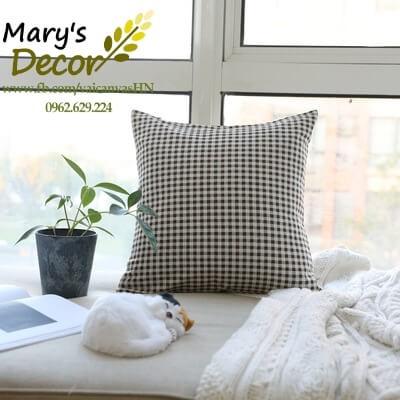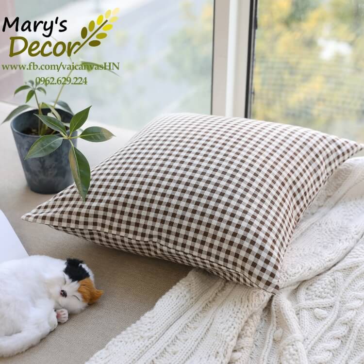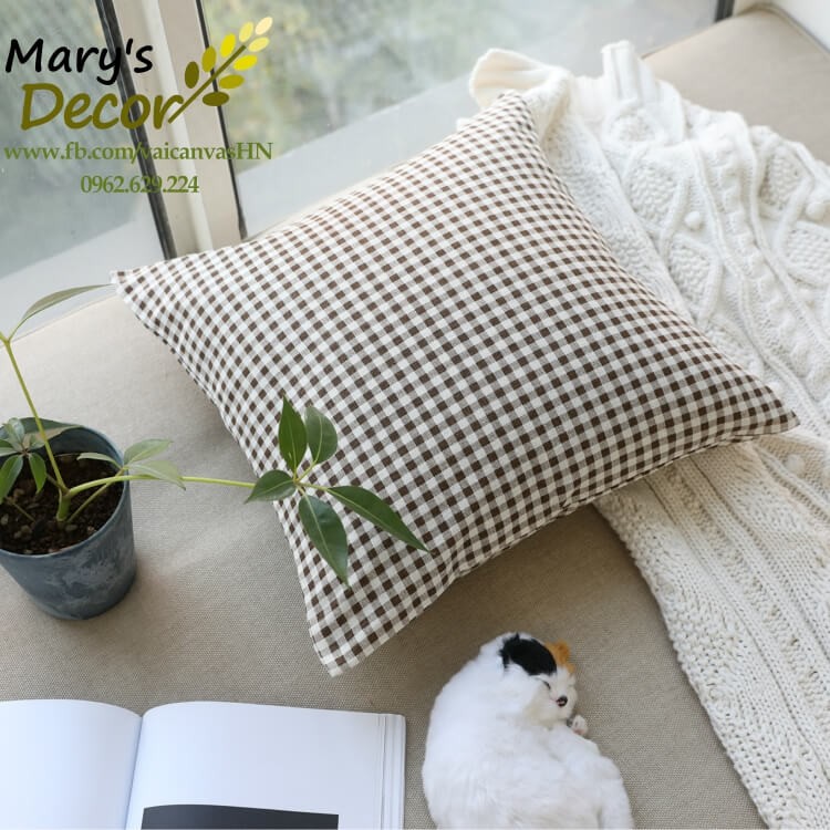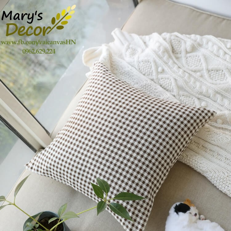 Giới thiệu Gối tựa sofa Mary Decor - họa tiết Caro nâu G-G08