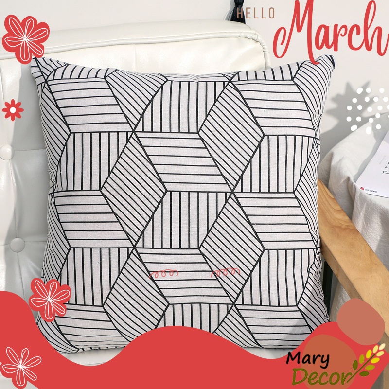 Nhà cửa & Đời sống > Nội thất > Ghế sofa || Gối tựa sofa Mary Décor - họa tiết Tứ giác đen nền trắng G-G10Còn hàng