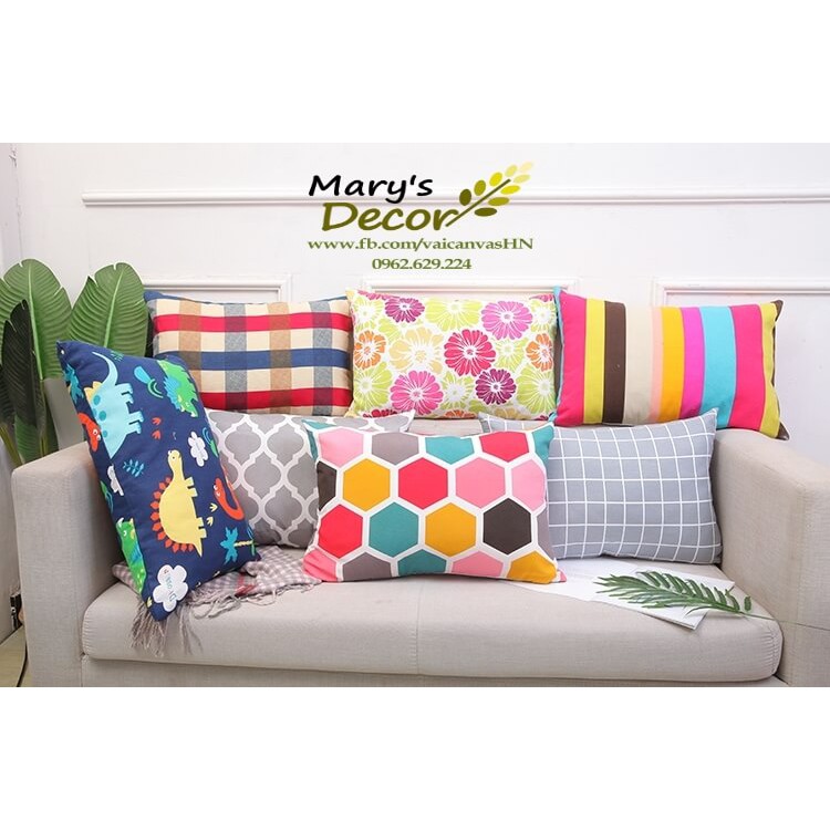 Một ứng dụng quan trọng và phù hợp nhất của dòng vải này là gối tựa trang trí/ gối tựa sofa. Chất vải an toàn, thân thiện môi trường và màu sắc sinh động, hàng trăm mẫu họa tiết có thể phù hợp với đủ mọi loại không gian trong nhà. Sản phẩm được may trực tiếp tại xưởng đảm bảo đường kim mũi chỉ tỉ mỉ, cẩn thận, có nhãn mác thương hiệu Mary Decor đảm bảo hài lòng mọi yêu cầu của bạn.