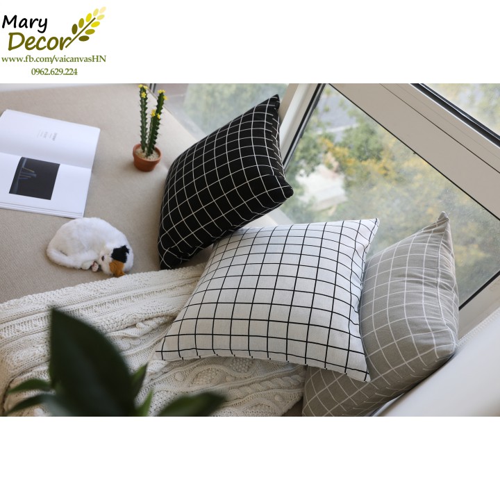 Nhà cửa & Đời sống > Nội thất > Ghế sofa || Gối tựa sofa Mary Décor - họa tiết Caro trắng G-A04Còn hàng