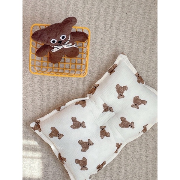 Gối và Chăn Xô Gấu HANDMADE Phong Cách HÀN QUỐC Hạn Chế Méo Đầu Cho bé Sơ SinhMặt ngoài: 100% vải Muslin vừa mềm vừa thấm hút mồ hôi
