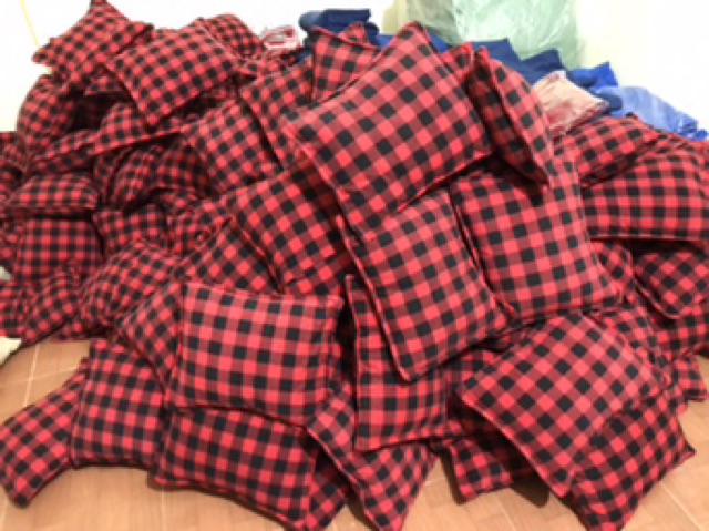 Gối văn phòng màu kẻ caro đỏ đen