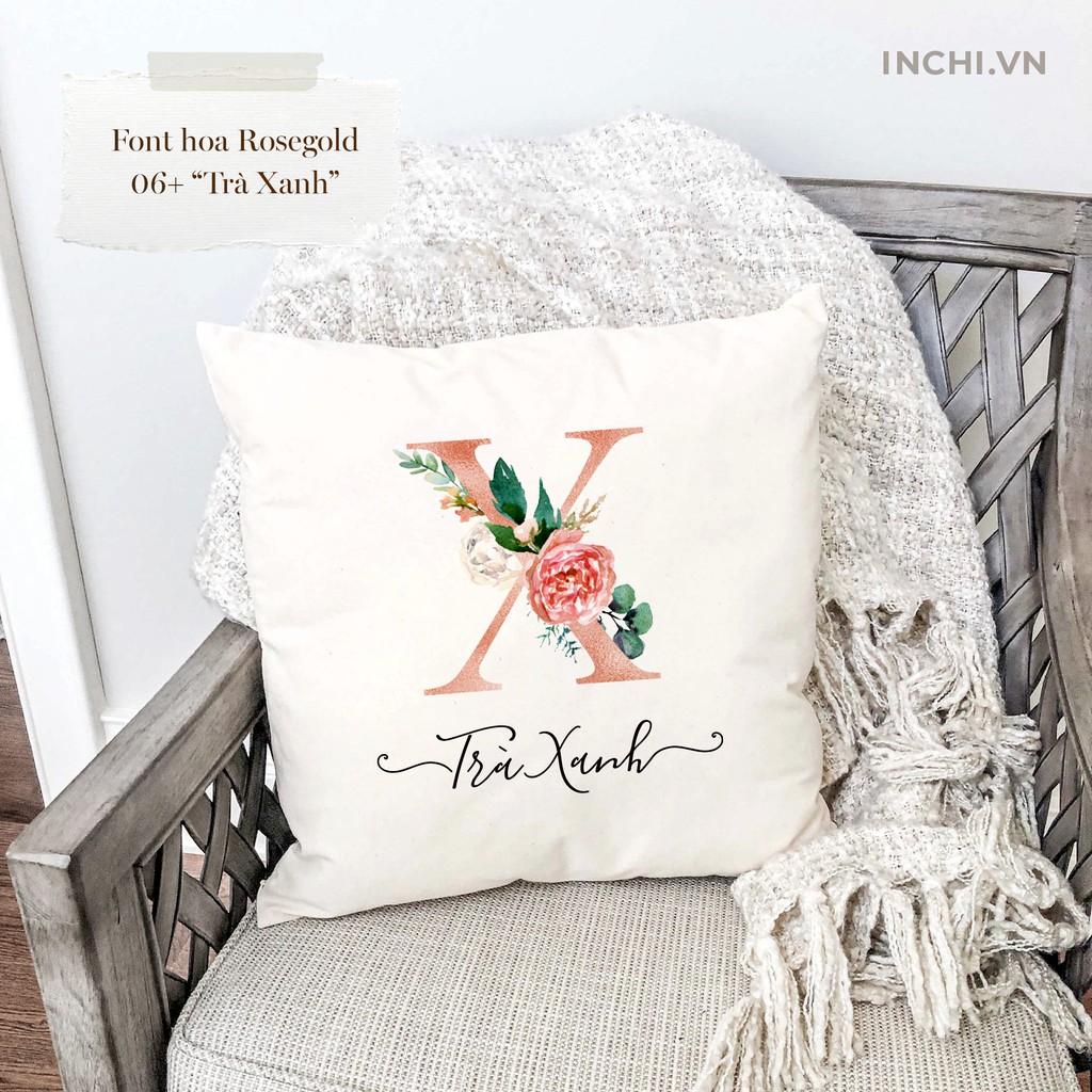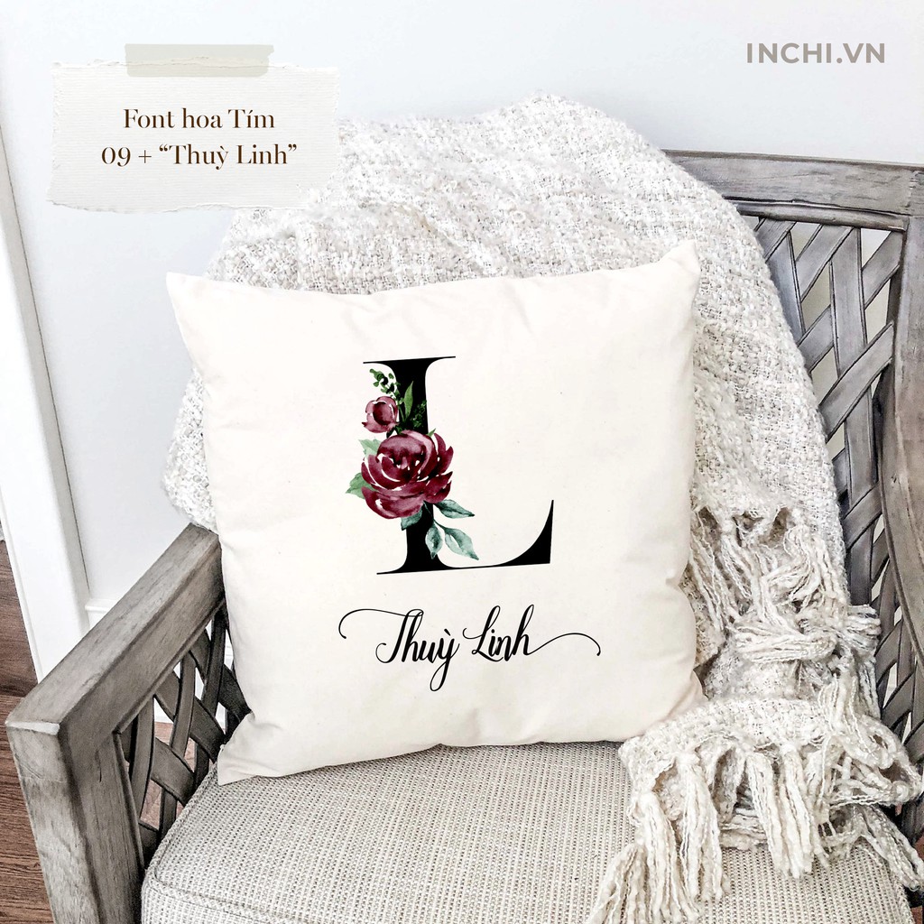 Gối vuông Bảng chữ cái hoa và in tên theo yêu cầu 2