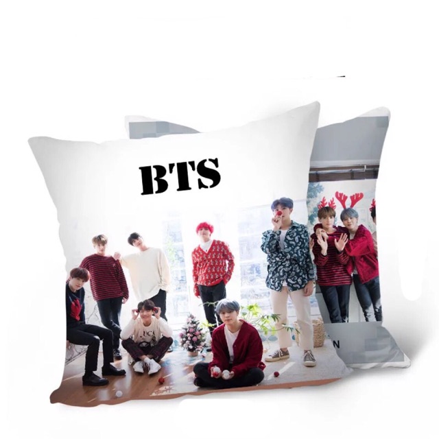 Gối vuông BTS 2019 giáng sinh (40x40cm) in 2 mặt
