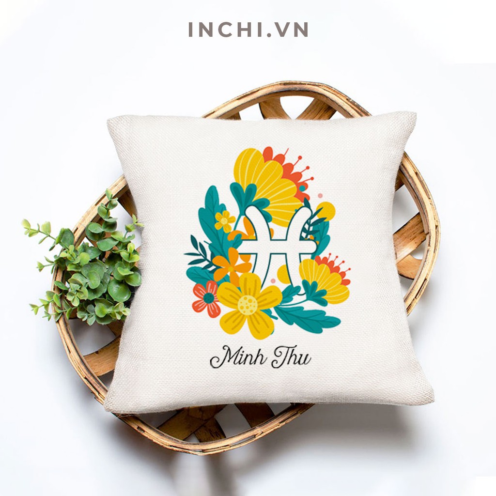 GỐI VUÔNG IN TÊN VÀ KHUNG HOA BIỂU TƯỢNG CUNG HOÀNG ĐẠO THEO YÊU CẦU HỌA TIẾT BẮT MẮT SÁNG TẠO PHÒNG NGỦ VĂN PHÒNG...
