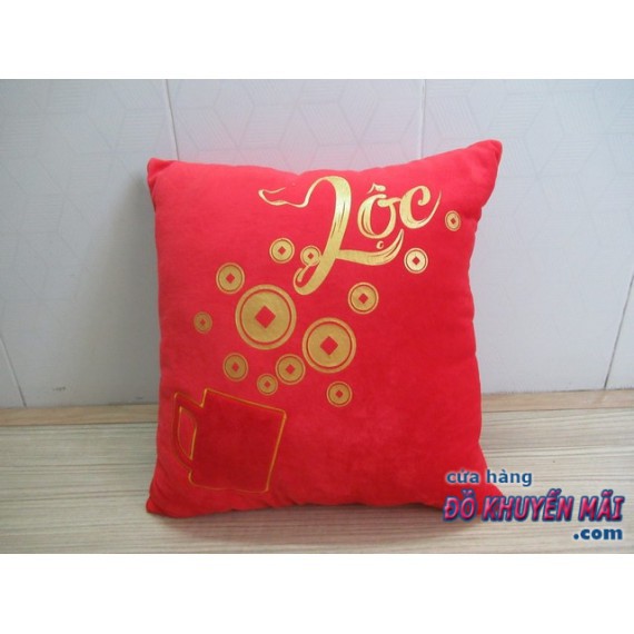 Chất liệu gối nhung, đầy gòn mềm mại, kích thước 37cmx37cmchỉ 1 màu đỏ may mắn, thêu chữ Lộc, rất tiện cho các bạn đặt trên ghế sofa, để trên xe hơi hay tựa lưng làm việc
