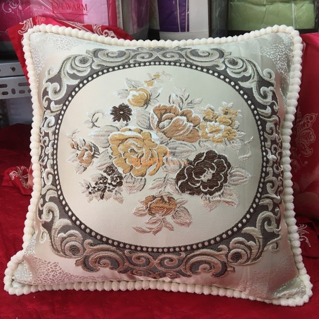 - Vỏ gối được may vô cùng tỉ mỉ, đường may chắc chắn, họa tiết hoa thêu máy vi tính sắc nét tinh vi.