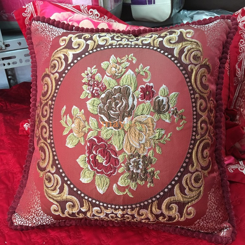 - Vỏ Tây Âu với họa tiết hoa văn thêu vô cùng tinh tế, sang trọng, cuốn hút, có thể giặt được máy giặt. Chất liệu vải nhung gấm lụa hoa cao cấp tạo nên sự khác biệt, đẳng cấp cho chiếc gối.