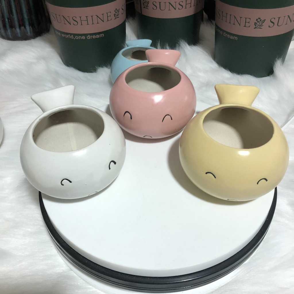 - Chậu men, in hình xinh xắn. Mang lại cảm giác sinh động và sang trọng.