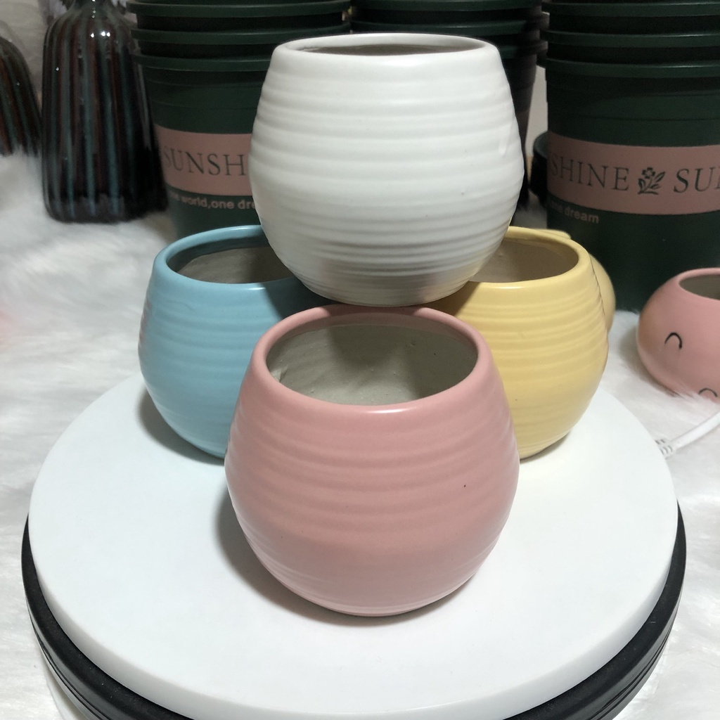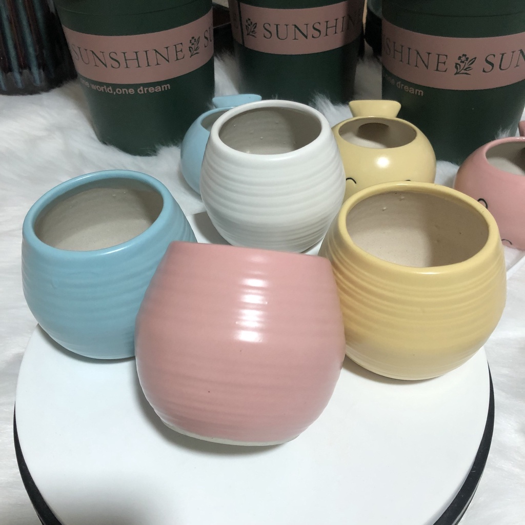 - Chậu men, in hình xinh xắn. Mang lại cảm giác sinh động và sang trọng.