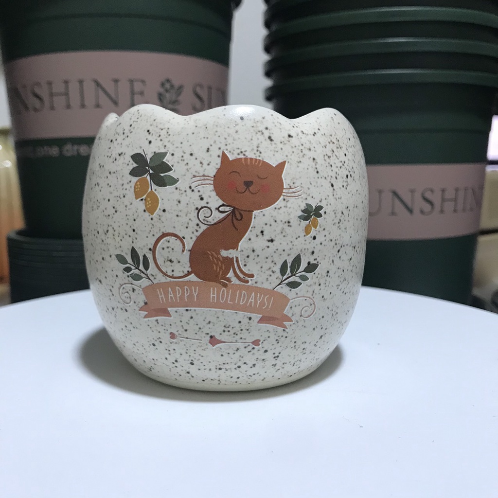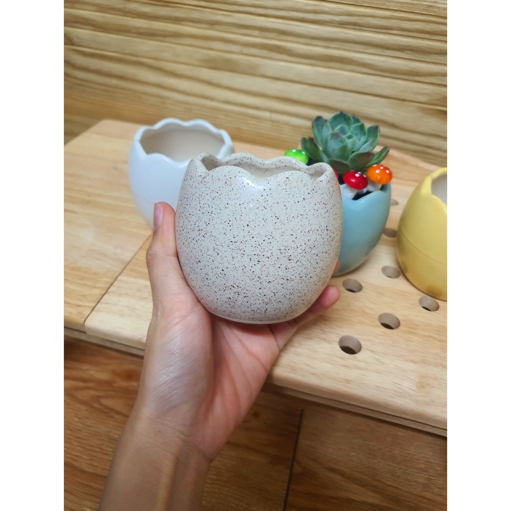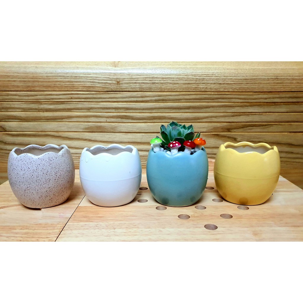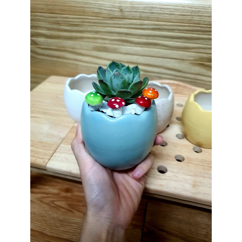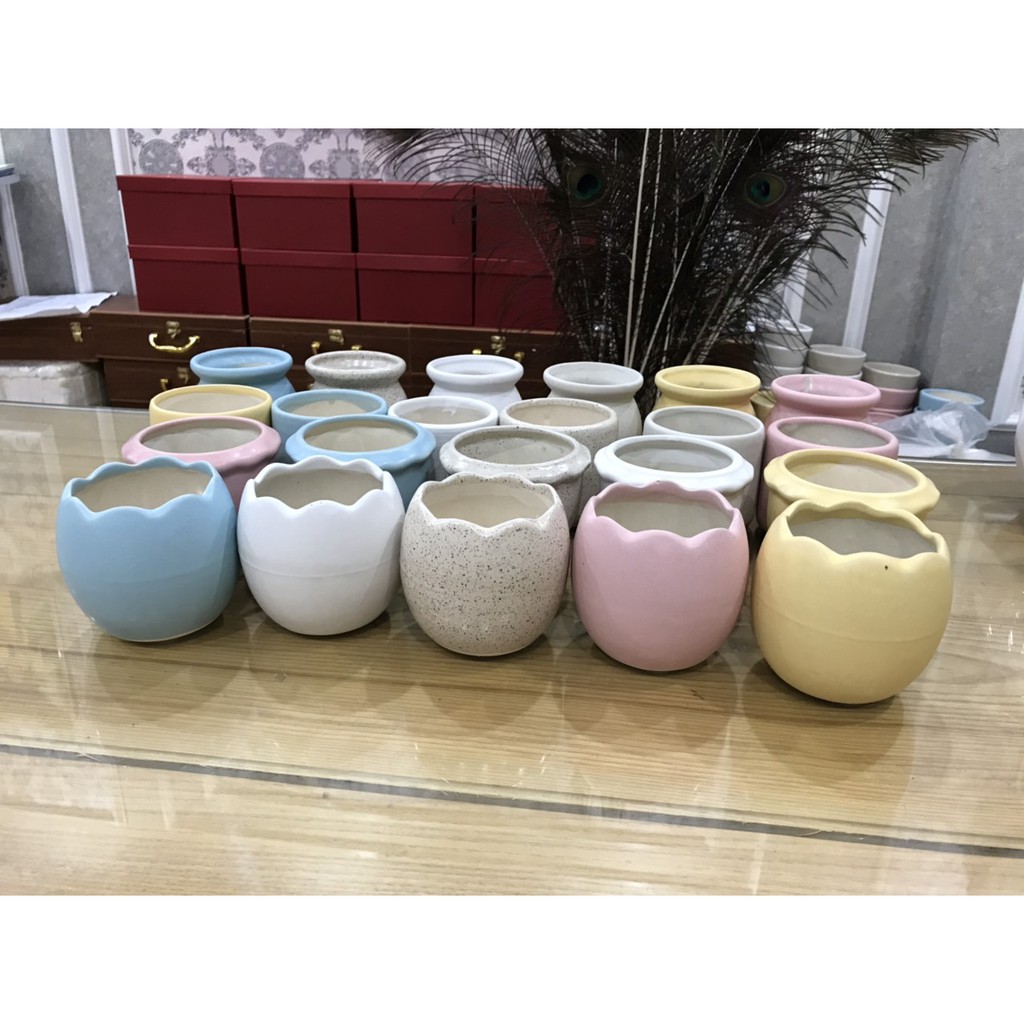- Chậu men, in hình xinh xắn. Mang lại cảm giác sinh động và sang trọng.