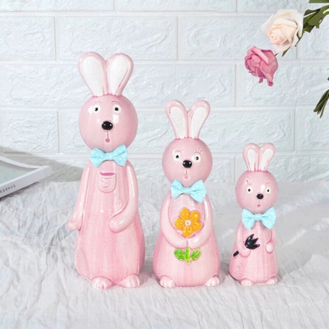 Bộ gốm sứ decor 3 Thỏ hồng xinh sắn