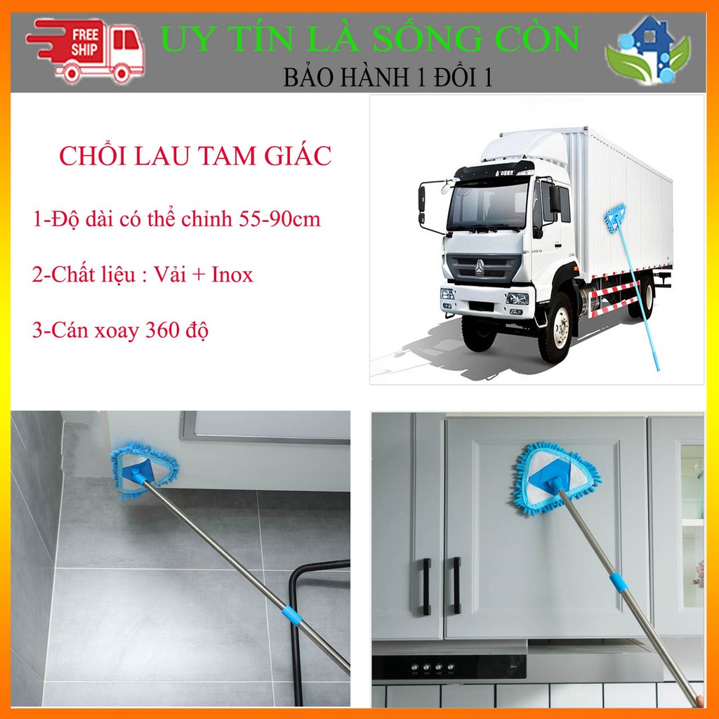 2. Công dụng [Gọn nhẹ - Tiện lợi - Rẻ] Chổi lau nhà hình tam giác có thể xoay 360 độ và điều chỉnh độ dài