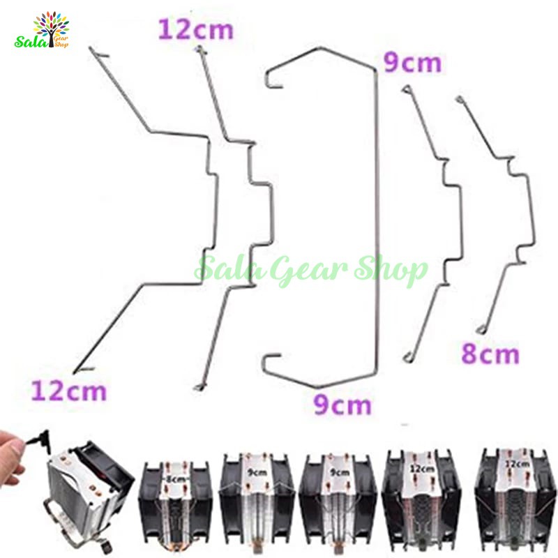 - Bộ sản phẩm bao gồm 2 móc kim loại vào lỗ bắt vít trên fan và gắn vào khối tản bằng cách gài vào lẫy