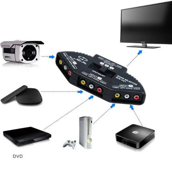 Bây giờ với các thiết bị kỹ thuật số nhiều. Rất nhiều người vì việc sử dụng thiết bị kỹ thuật số và số lượng của chúng đủ rắc rối để lựa chọn đầu ra cho tín hiệu hình ảnh và âm thanh. Nguyên nhân dây chuyền thường phải kéo vào kéo, không chỉ gây khó chịu, nhưng cũng rất có khả năng gây hại cho máy. Sản phẩm này mang lại sự tiện dụng cho người sử dụng. Miễn là chúng ta đặt các kết nối đầu ra đầu vào TV địa phương có thể là hộp set-top .DVD, VCD. Sau đó, theo yêu cầu của bạn. bật tắt công tắc ở giữa của sự lựa chọn của riêng mình mà cách kết nối với TV.3 đầu vào tín hiệu AV 1 đầu ra tín hiệu AV cho bạn lựa chọn tín hiệu đầu vào qua công tắc.